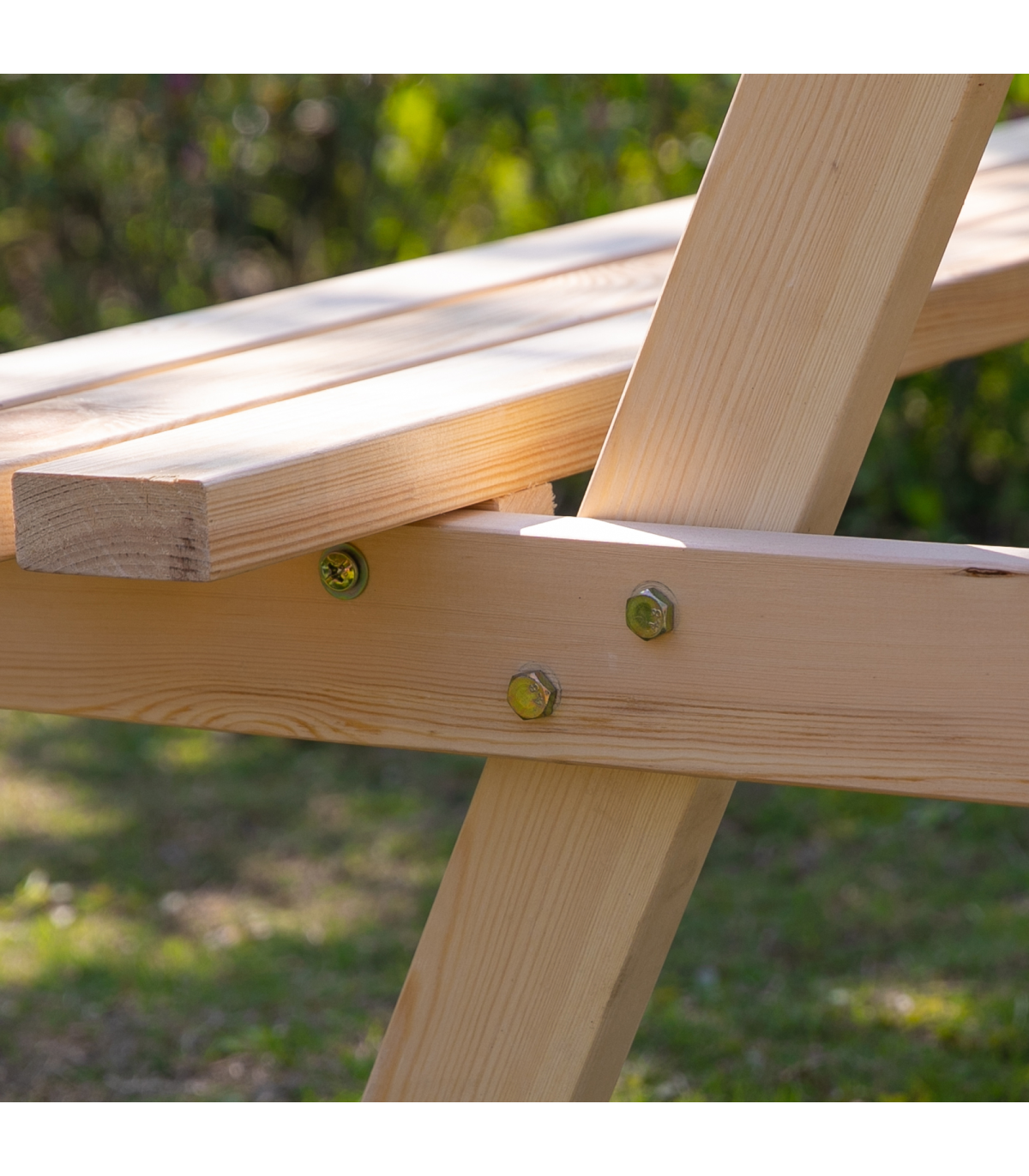 All the edges have been hand finished to ensure smoothness and no possible splinters The thick wooden frame help ensuring added life and stability while holding impressive weights A parasol cutout allows user to add their own shade when needed to enjoy outdoor space in sun 4-Seater pub, beer garden style design to suite any outdoor decor. Assembly Required. Parasol not included