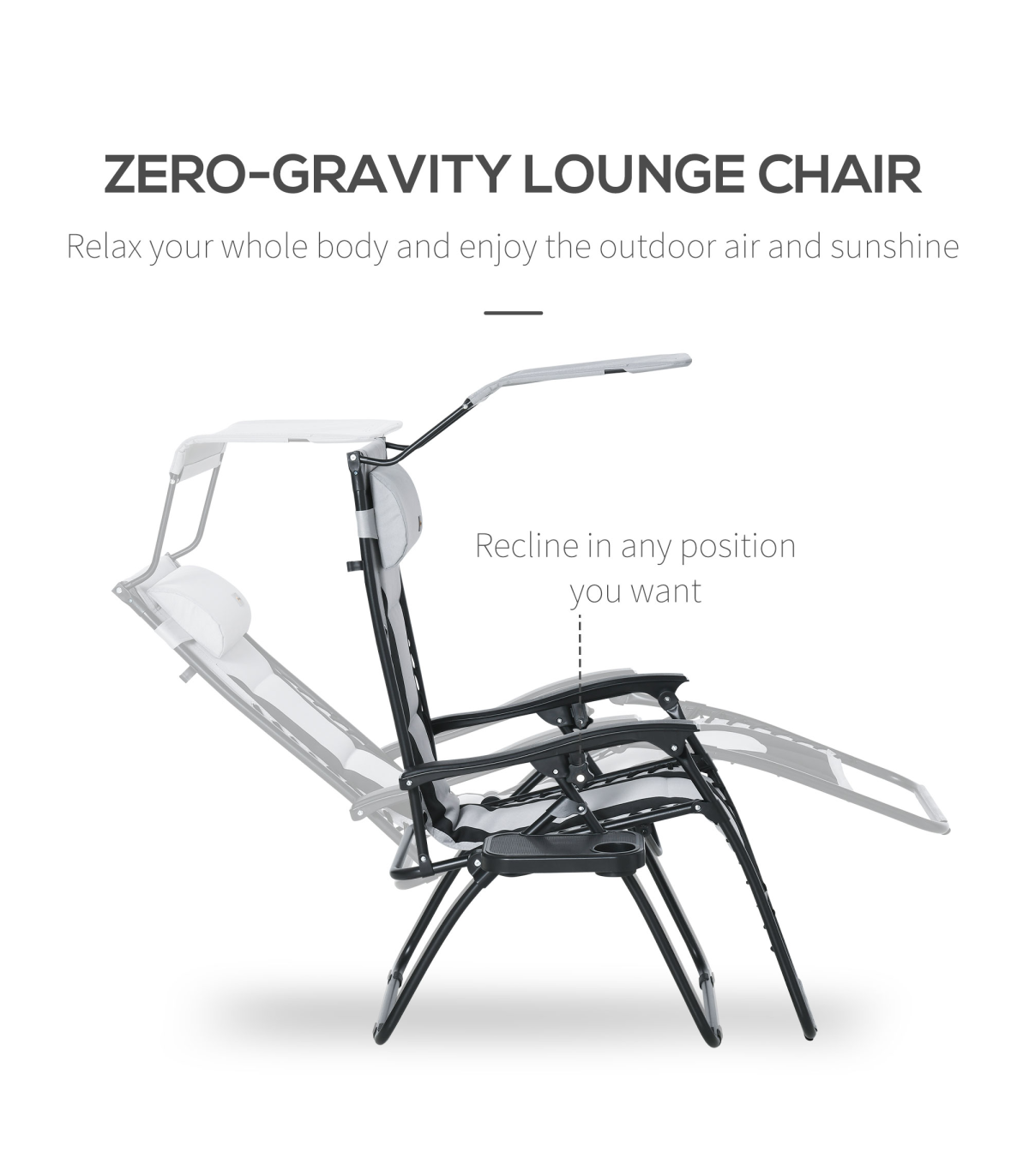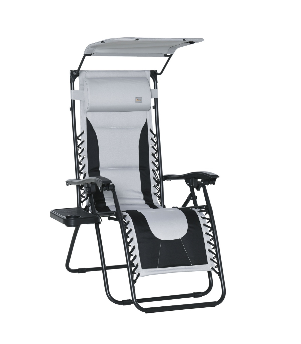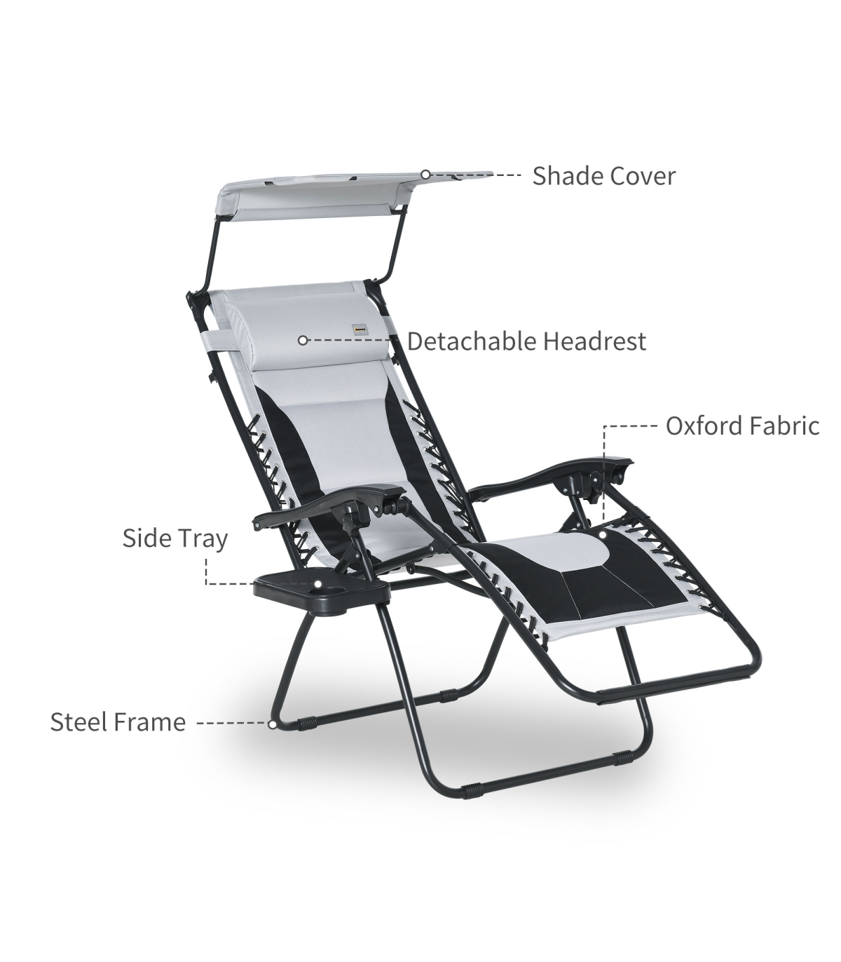 Zero Gravity Lounger Chair, Shade Cover, Cup Holder Headrest Grey