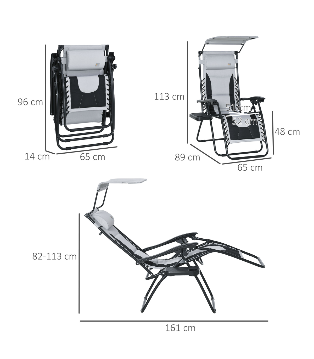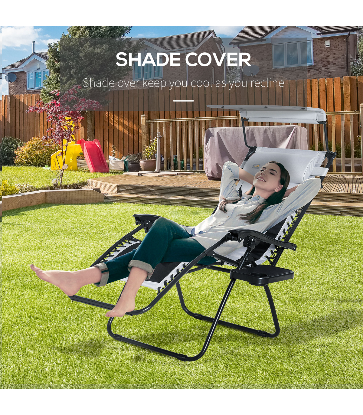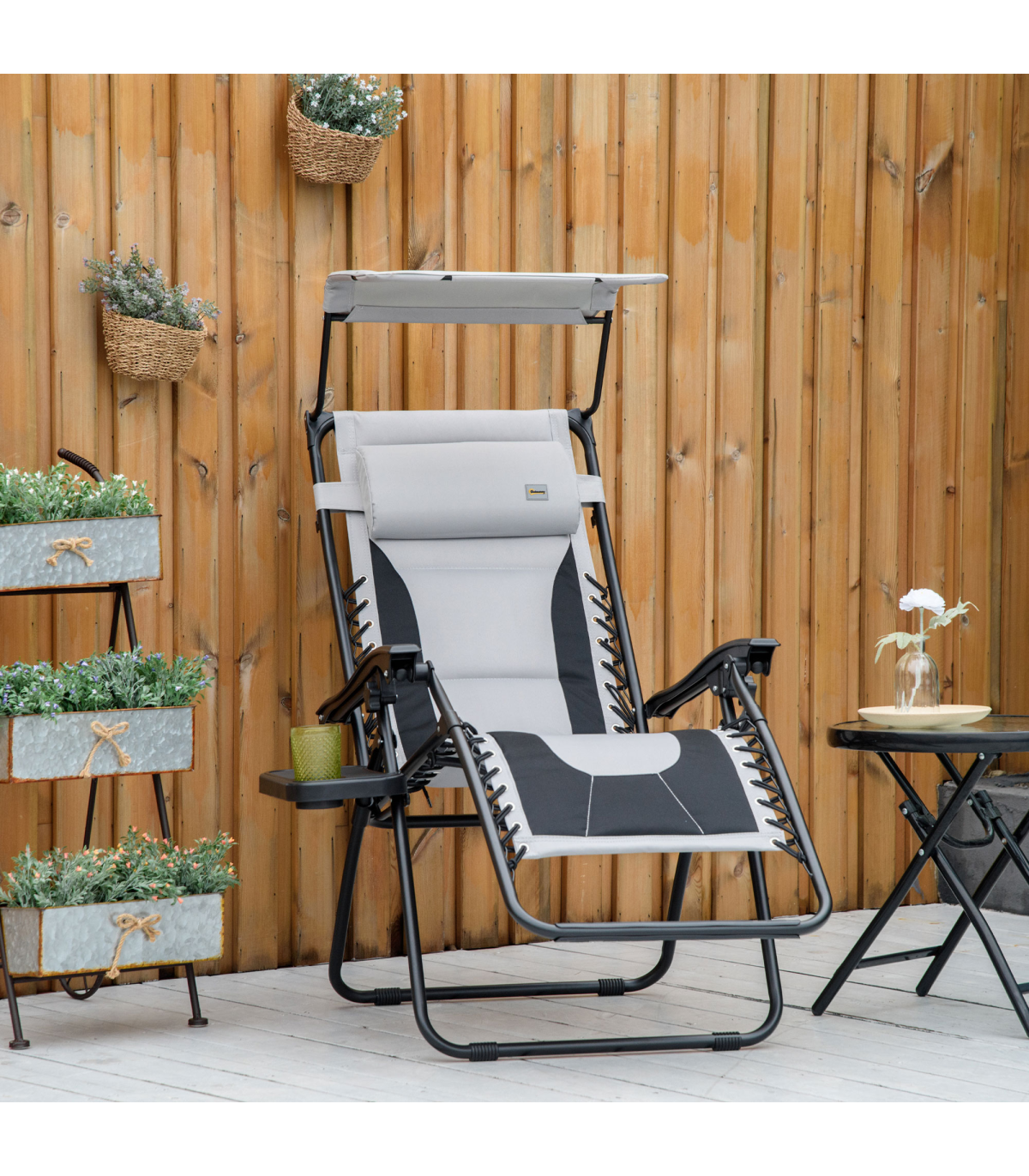 Zero Gravity Lounger Chair, Shade Cover, Cup Holder Headrest Grey