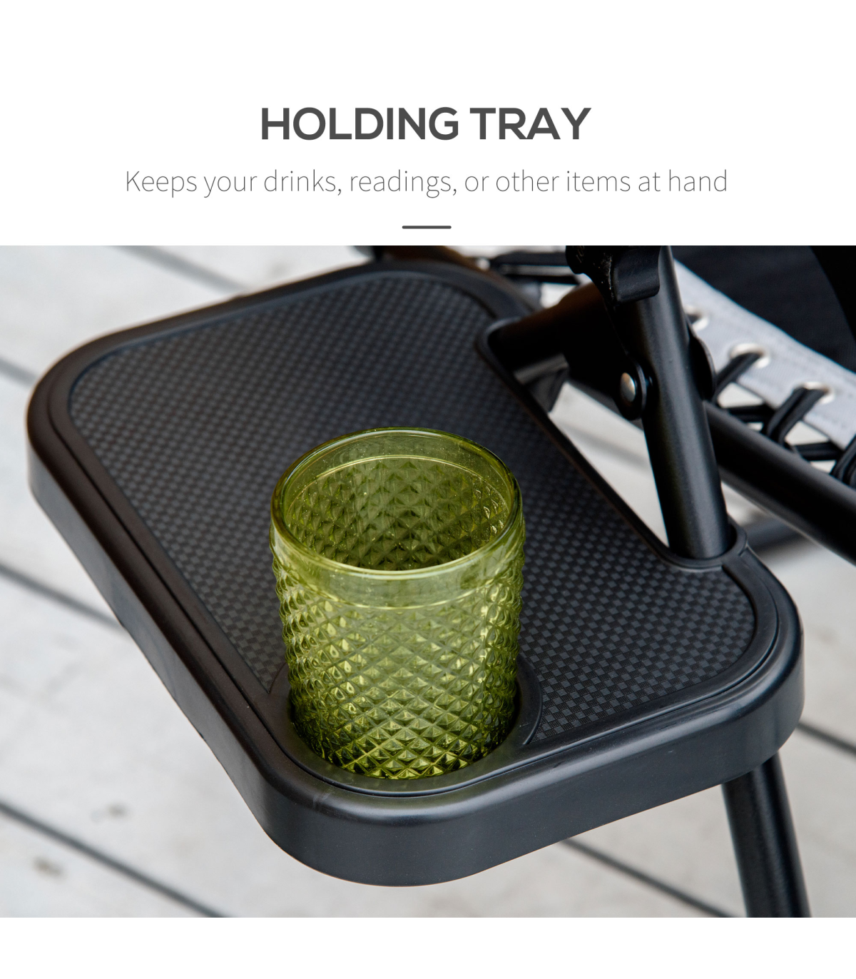 Let the day's stress drift away with this zero-gravity chair from Outsunny. Its comfortable design evenly distributes your body weight to reduce back pressure and provides superior lumbar support as you sit. This piece of outdoor furniture allows you to relax while fully reclined to the most comfortable 'zero-gravity' position.