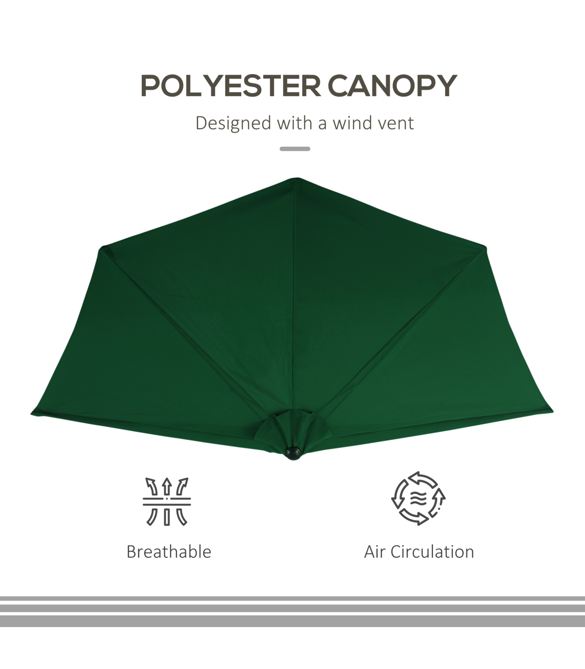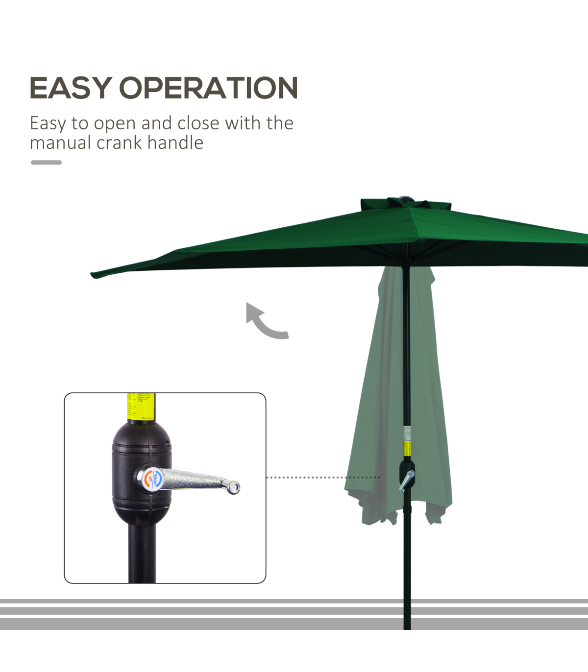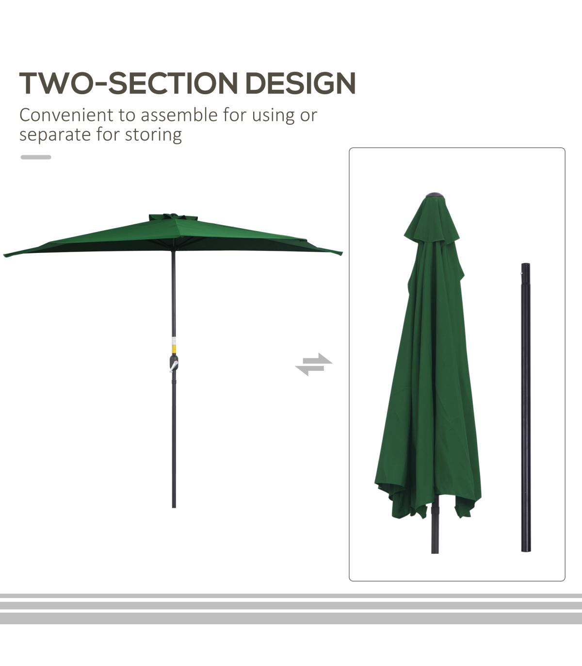 3m Half Parasol Umbrella Metal Frame Crank NO BASE INCLUDED, Green