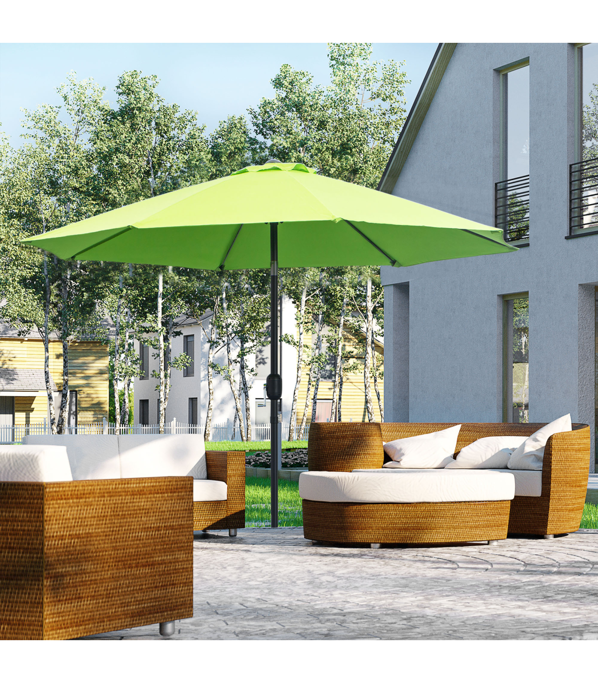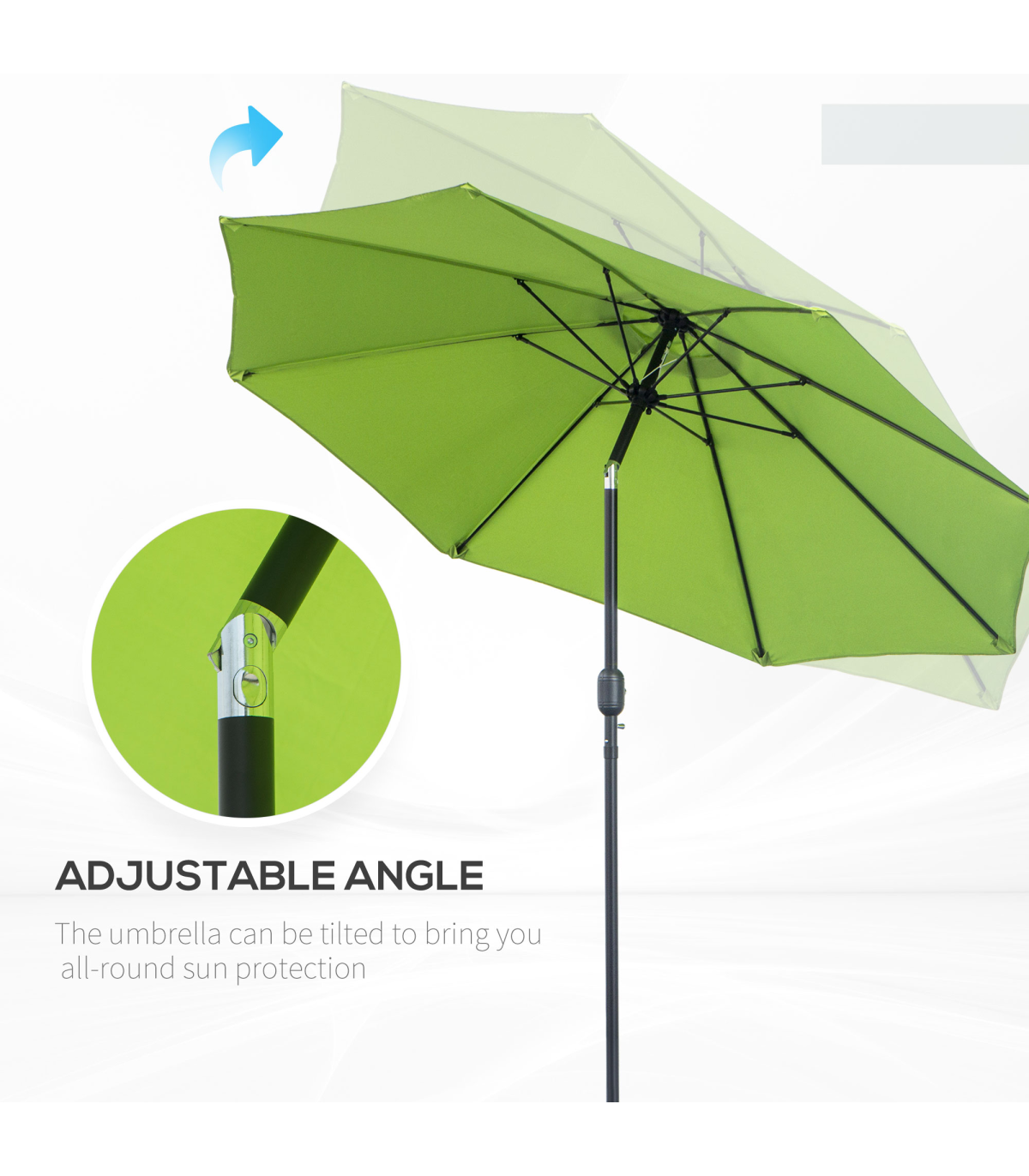 2.7M Patio Sun Umbrella Parasol Tilt Canopy Aluminium Light Green