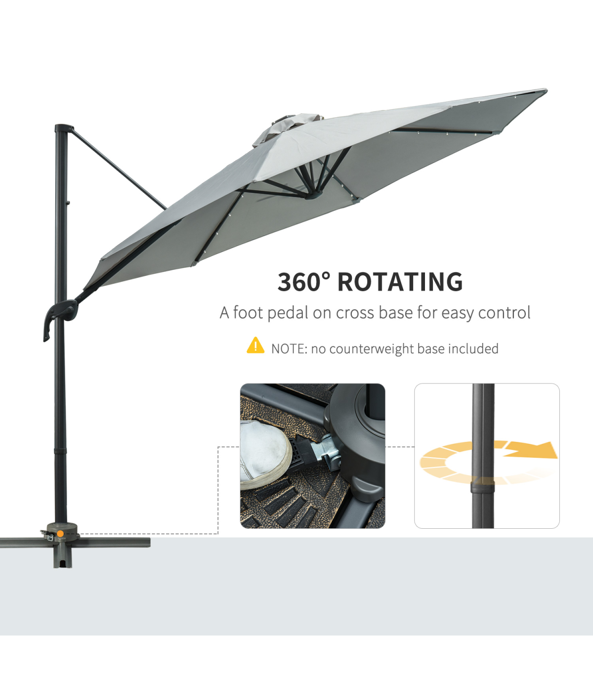 3m Cantilever Roma Parasol Patio Sun Umbrella with LED Solar Light, Grey