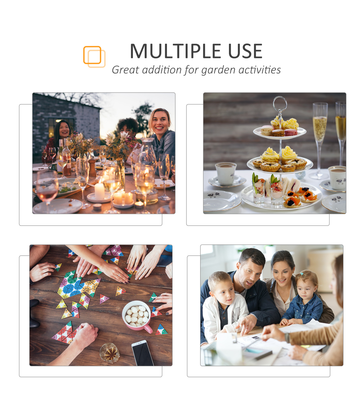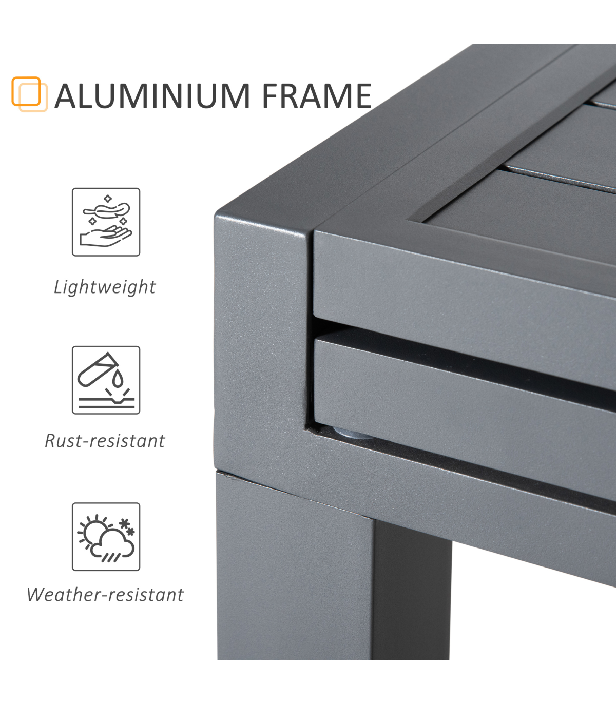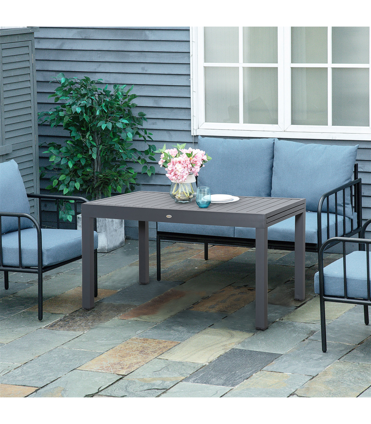 Pick a stylish addition for dining, afternoon tea and parties on patios, decks and more, with this extendable garden table from Outsunny. The powder coated aluminium frame is sturdy and durable. The tabletop extends between 135cm and 270cm - seating between eight and people: a large table great for when friends and family come over!