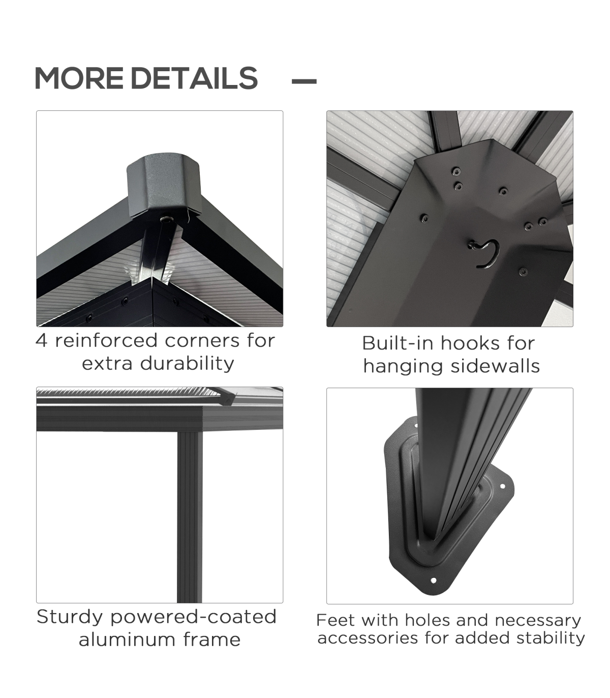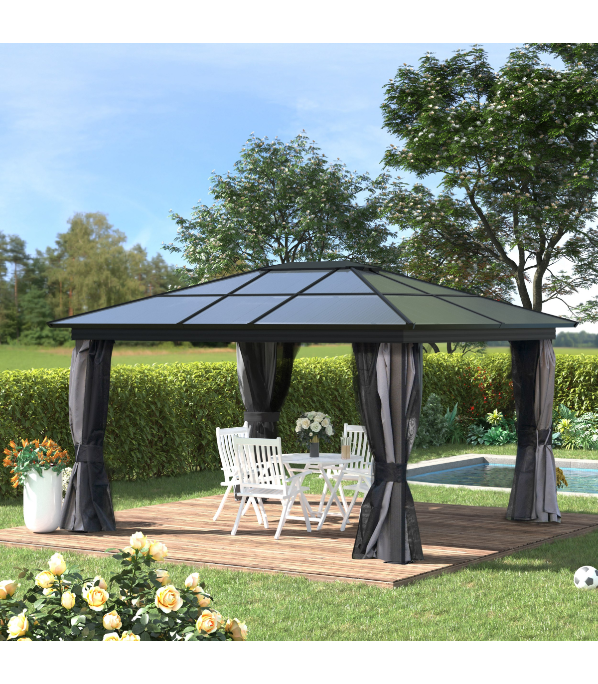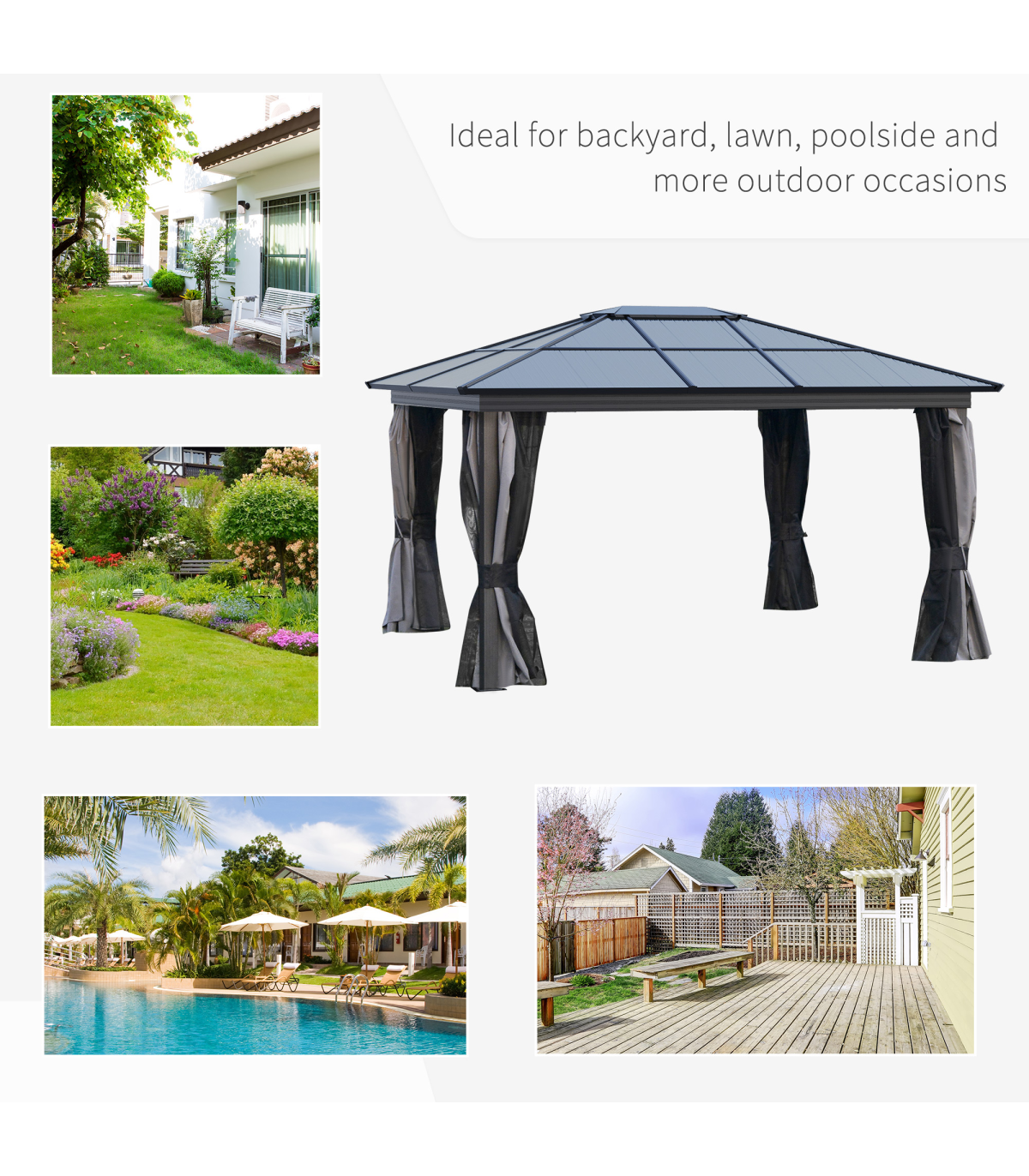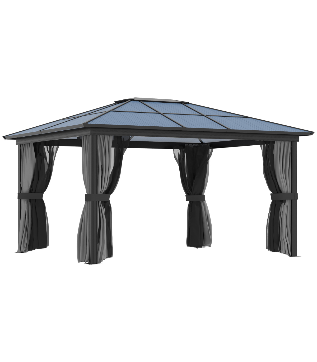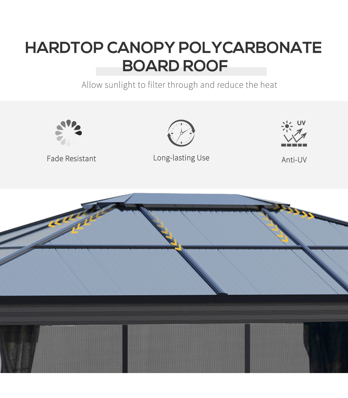 4x3.6m Aluminium Hardtop Gazebo Canopy w/ Polycarbonate Top, Curtains Outsunny