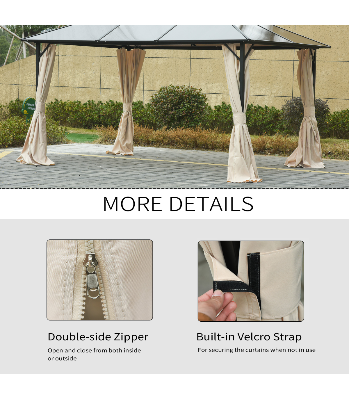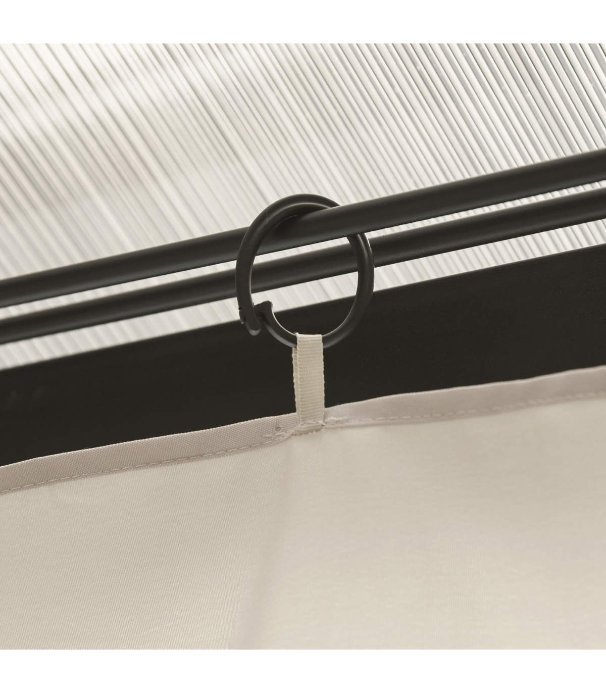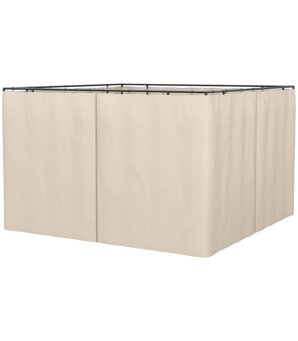 APPLICABLE TO: Our gazebo side curtains allow you to create protection when enjoying leisure time outdoors. This means eating food or drinking beverages can be enjoyed without being disturbed, while also protecting you from nasty wind and sunshine.PREMIUM MATERIALS: The gazebo sides panels only are made of durable and high-quality polyester fabric. The middle of each piece has velcro straps for easy fixing when not in use. The double-sides zipper of the pergola sidewall allows you to open and close easily from both inside and outside, providing convenience for use.EASY TO INSTALL: Easy to install by C rings or hooks are included with these gazebo curtains, which can meet the needs of different gazebo structures. Hooks are used for slide rails, and C-shaped rings are used for square or round beam pipes.NOTES: These gazebo replacement curtains can fit most 3 x 3(m) metal gazebos. PANELS ONLY, THE GAZEBO FRAME IS NOT INCLUDED. Please measure your gazebo size before purchasing. Do not wash.WHAT IN THE BOX: Sidewall x 4 pcs (Sidewall Dimensions: 302L x 205H cm), Hooks x 40 pcs, C rings x 40 pcs.