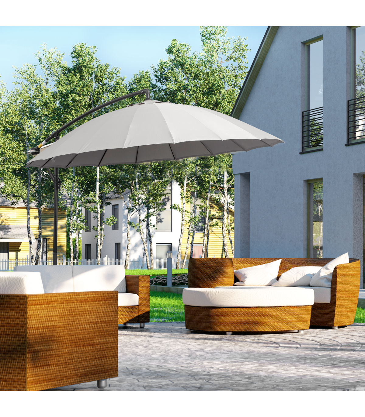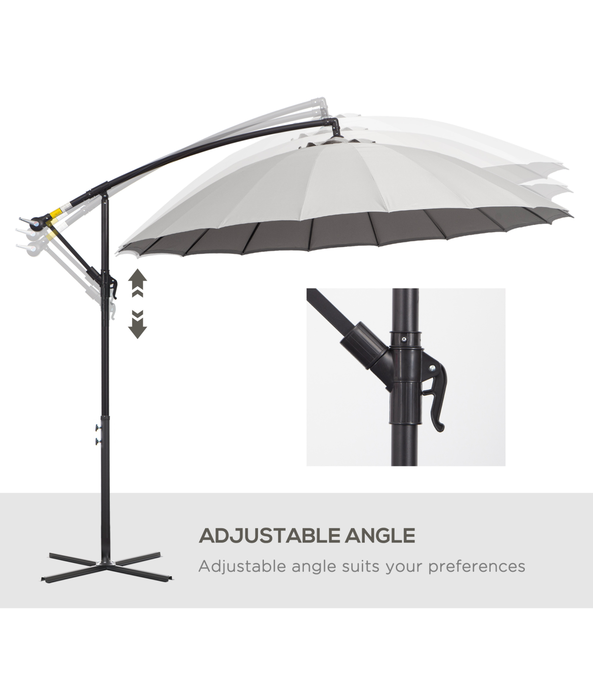 3(m) Cantilever Shanghai Parasol w/ Crank Handle, Cross Base, Grey Outsunny
