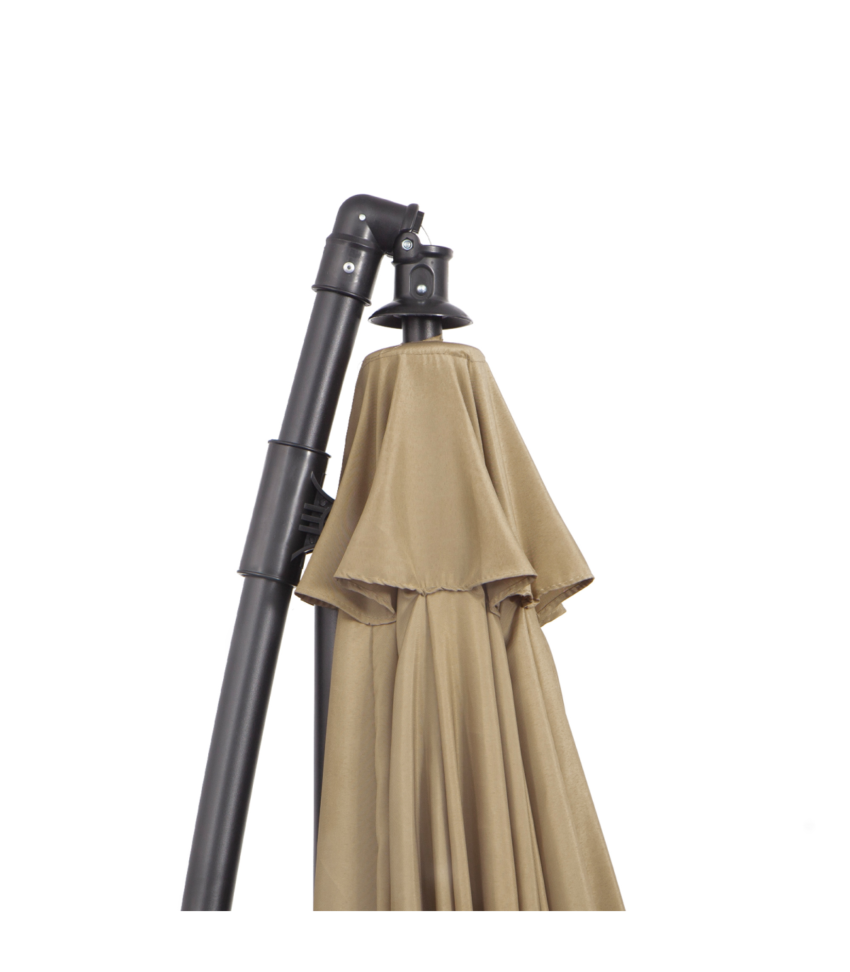 OFFSET CANTILEVER UMBRELLA: This dark blue square offset cantilever umbrella can cover large patio furniture that doesn't have a hole to mount a standard umbrella to. Use it to cover outdoor sectionals, pool lounge chairs, or patio dining sets to provide comfortable shade even in difficult situations.METAL FRAME: The cantilever parasol with base included features a tough structure which is powder coated for extra strength so the outdoor parasol stands in place. Connected to the canopy with 18 fibreglass ribs for stability.HAND CRANK: Opens and closes the garden parasol with base included easily and smoothly. TOP AIR VENT: Allows air out to help prevent the large garden parasol turning outwards.SUITABLE BASES: Outsunny skus 84D-070, 84D-128, 84D-048 and 84D-124 Note: Only a cross base included, no counterweight base.DIMENSIONS: 2.60 x ��2.96m. NOTE: No counterweight base included. DO NOT LEAVE IN HEAVY RAIN AND WIND.