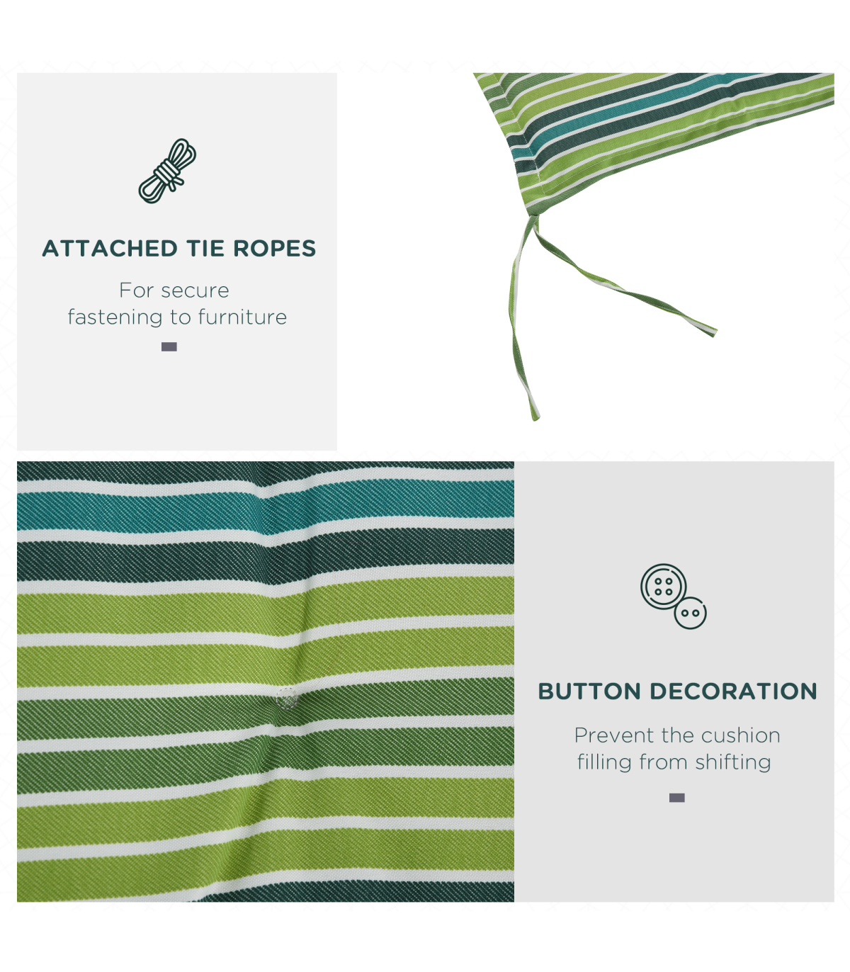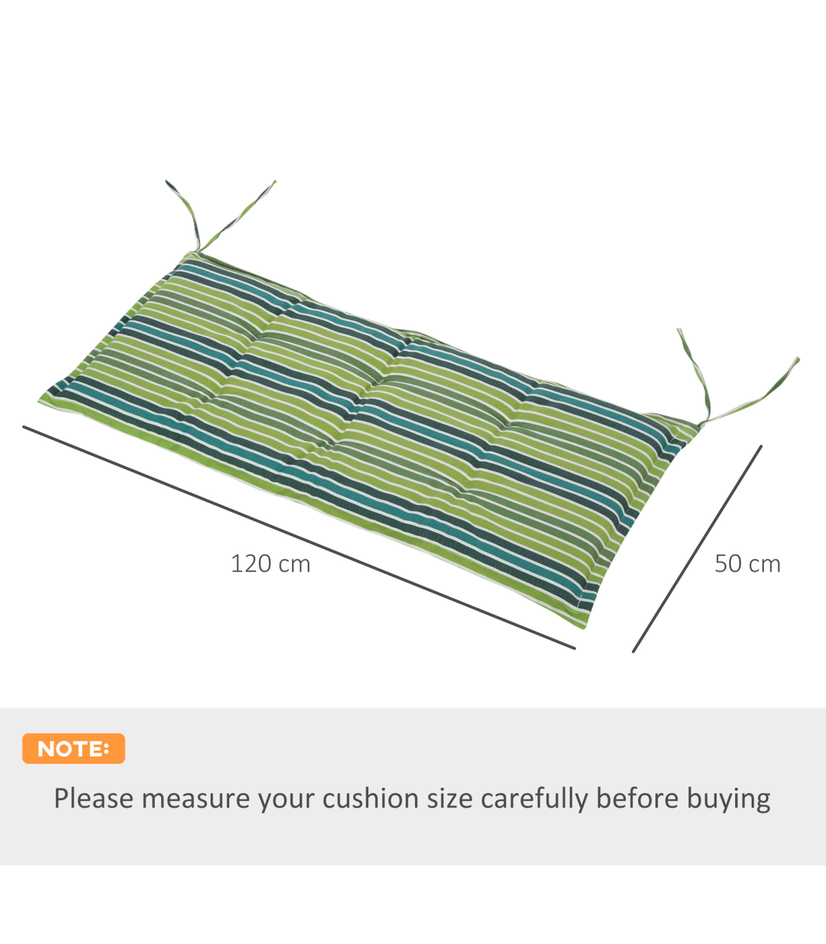 SET OF TWO: Perfect for refreshing your home and outdoor furniture quickly and easily. Colourful striped design in a slightly muted tone, injects colour without distracting attention away.DURABLE COVERS: Made from polyester, replacement cushions for rattan furniture are durable and tough, providing reliable use indoors and outdoors. Resistant to light stains, fading and water.OVERSTUFFED FILLING: Thick sponge of the garden chair cushions to provide comfort all day long. TIE FASTENINGS: Placed on the two corners, securing the covers to your bench to keep outdoor seat cushions in place all-day long.EASY CLEAN: Covers can spot cleaned with mild soap and warm water, left out to dry naturally, keeping replacement cushions for outdoor furniture fresh and clean.DIMENSIONS: 5T x 120L x 50Wcm.