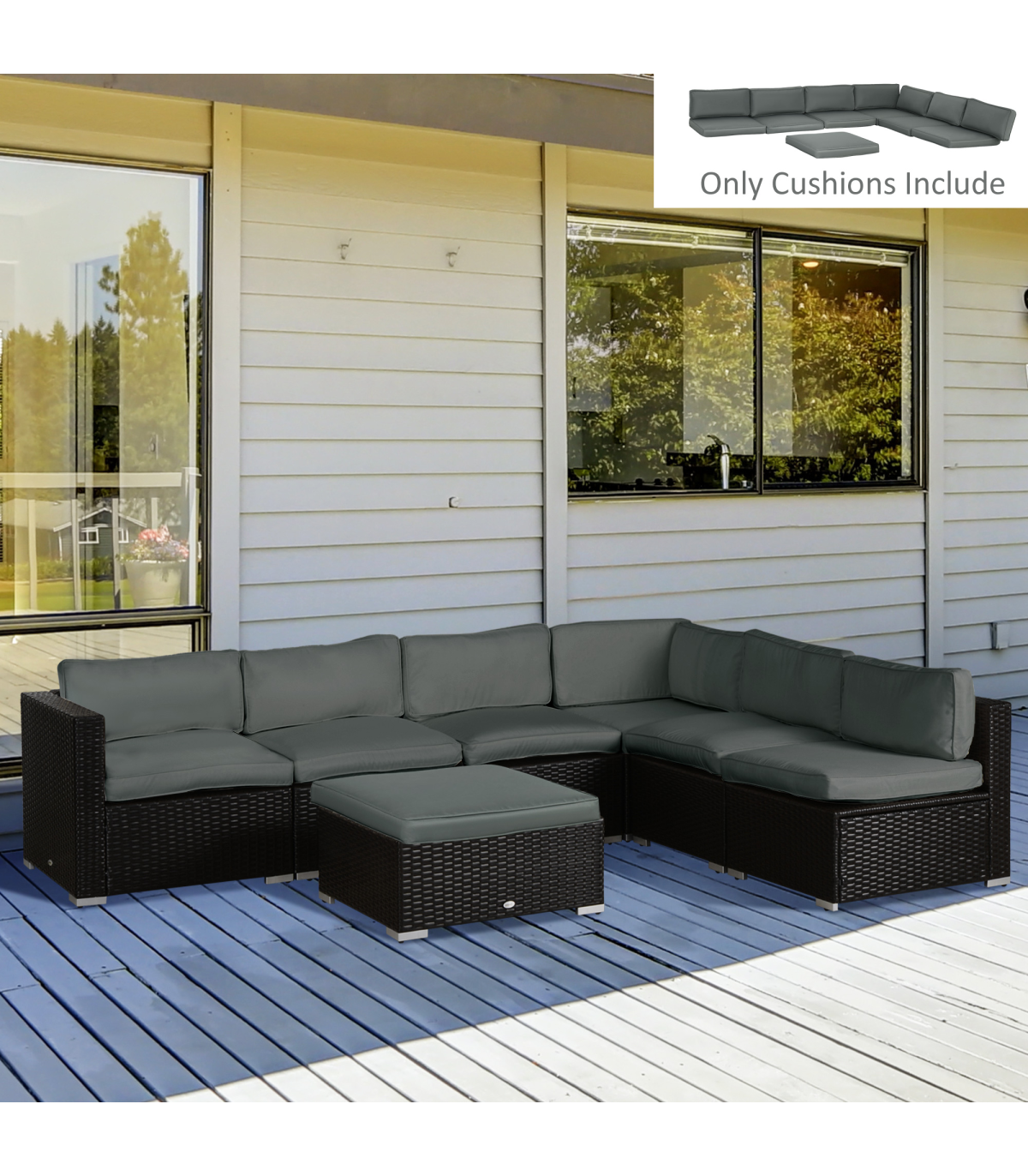 Rattan furniture cushions: Includes seven seat cushions and seven back cushions, suitable for a 7-seat sofa set. Easy way to update your garden and outdoor conversation sets.Comfortable sitting: Considering both high resilience and softness, we fill the outdoor furniture cushions with two different types of filling, so that you can enjoy hours of relaxing under the sun.Removable covers: Polyester is smooth, mild weather resistant. The cover is with zip fastening and thus easy to remove for cleaning.Two maintenance choices: It can be washed by both hand and machine. Refresh your outdoor seat cushions quickly to greet the coming season.Seat cushion dimension: 65L x 65W x 8Dcm. Back cushion dimension: 65L x 30W x 8H cm. Note: Please measure your furniture size carefully before buying to make sure garden seat cushions fits well.