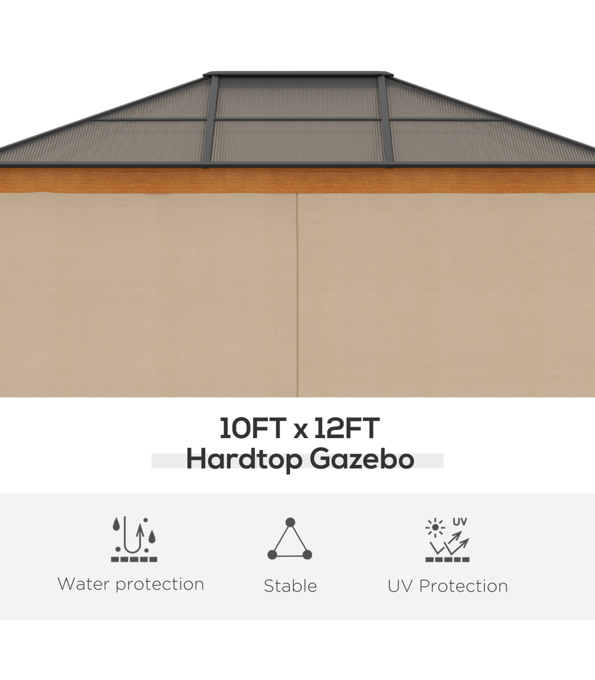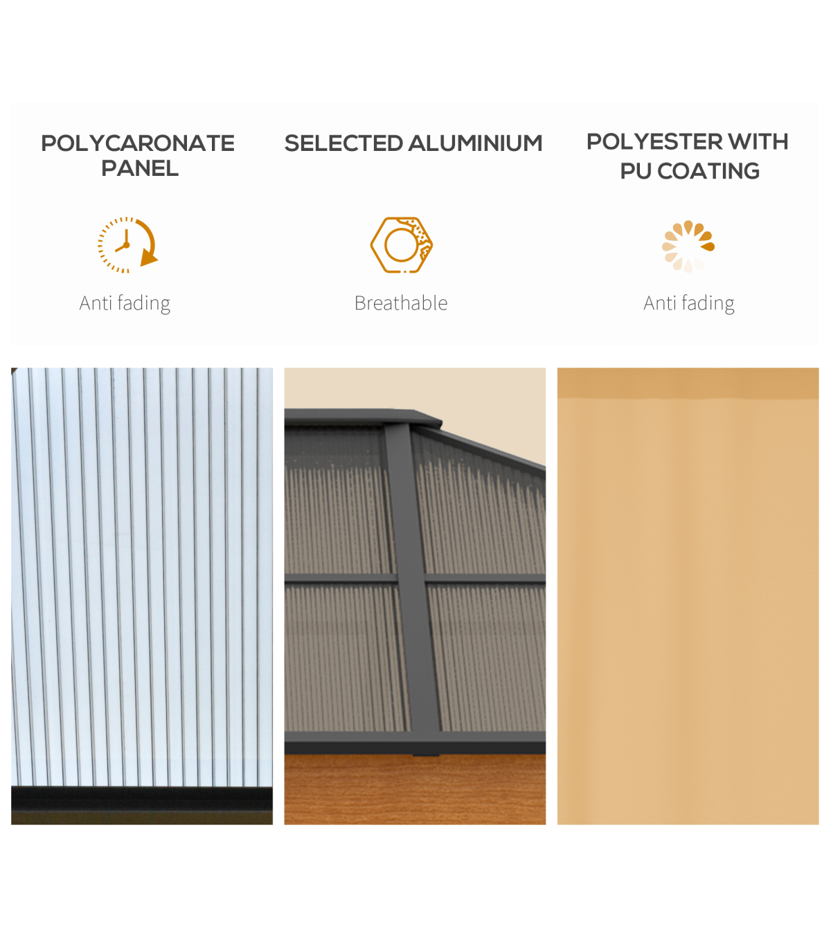 Hardtop Gazebo with Polycarbonate Roof Aluminium and Steel Frame for Patio Khaki