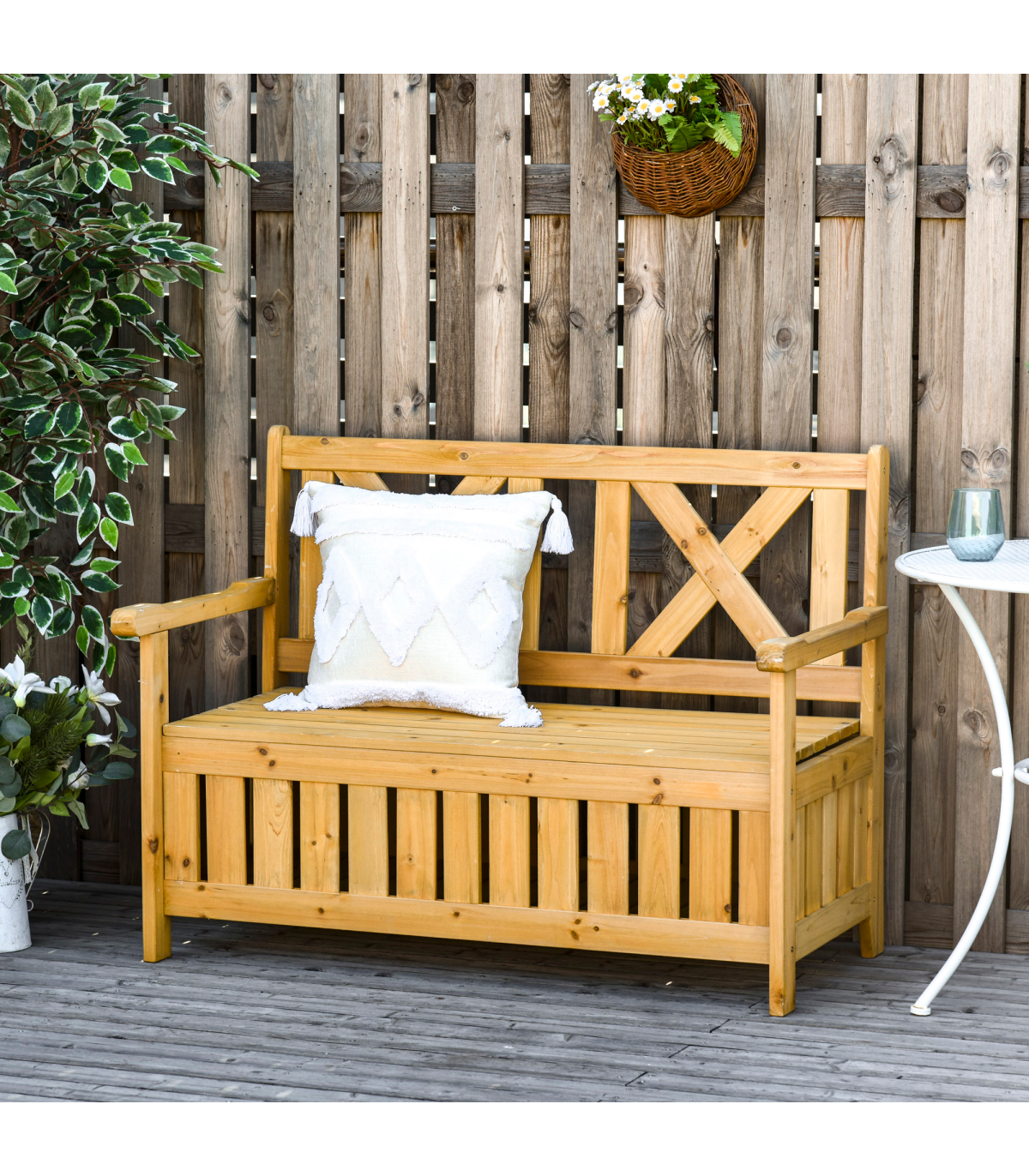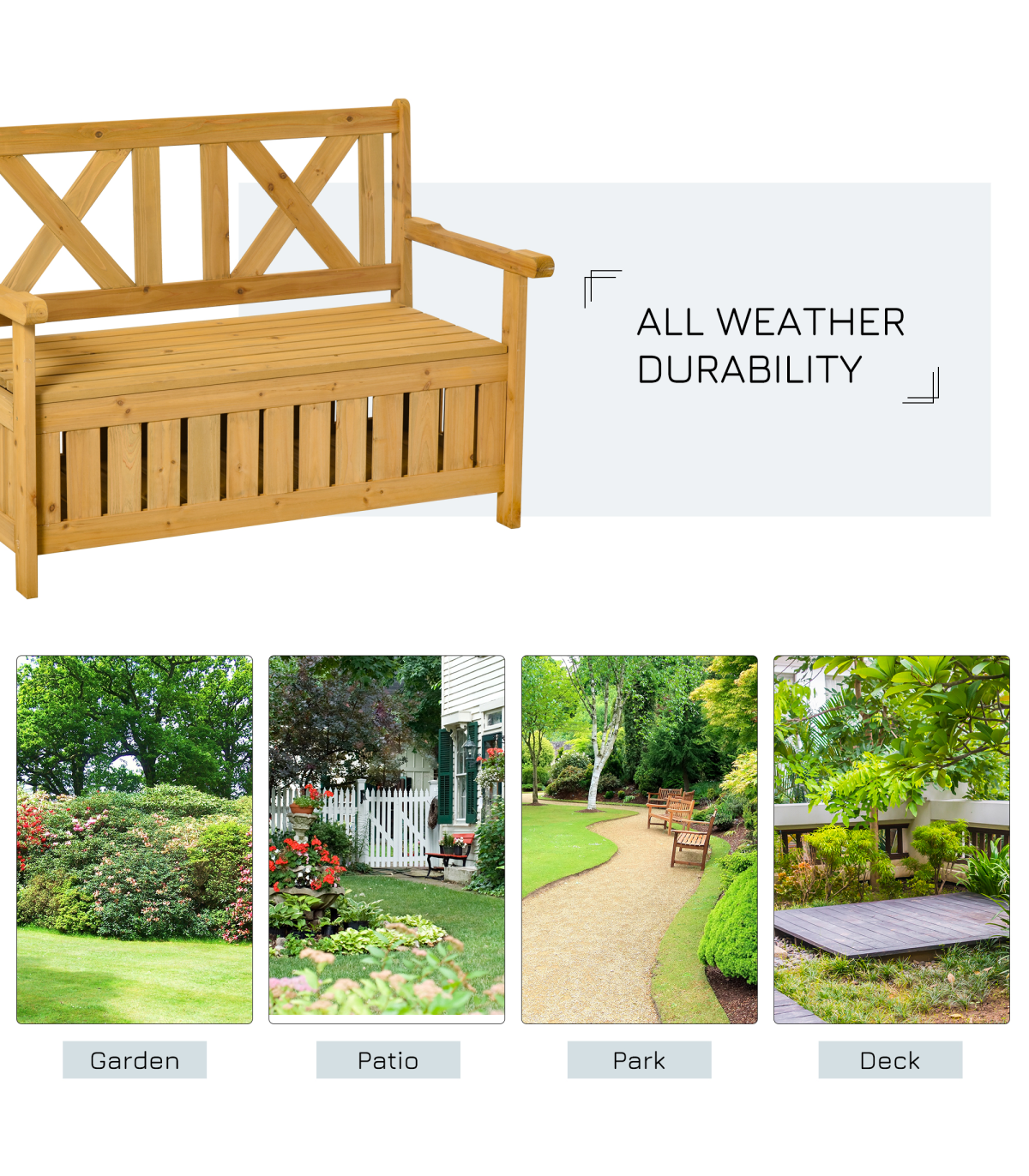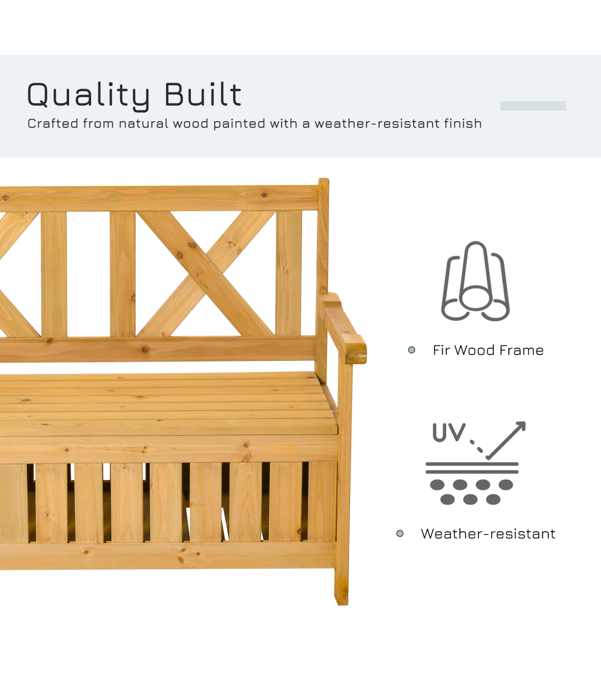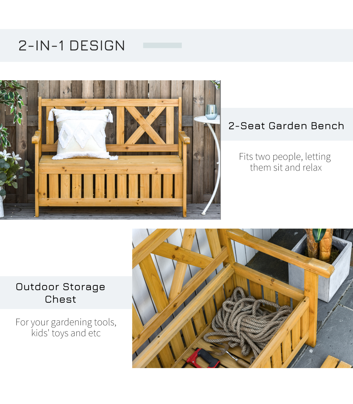 2-Seater Garden Storage Bench for Patio Wood Porch Decor Outdoor Seating