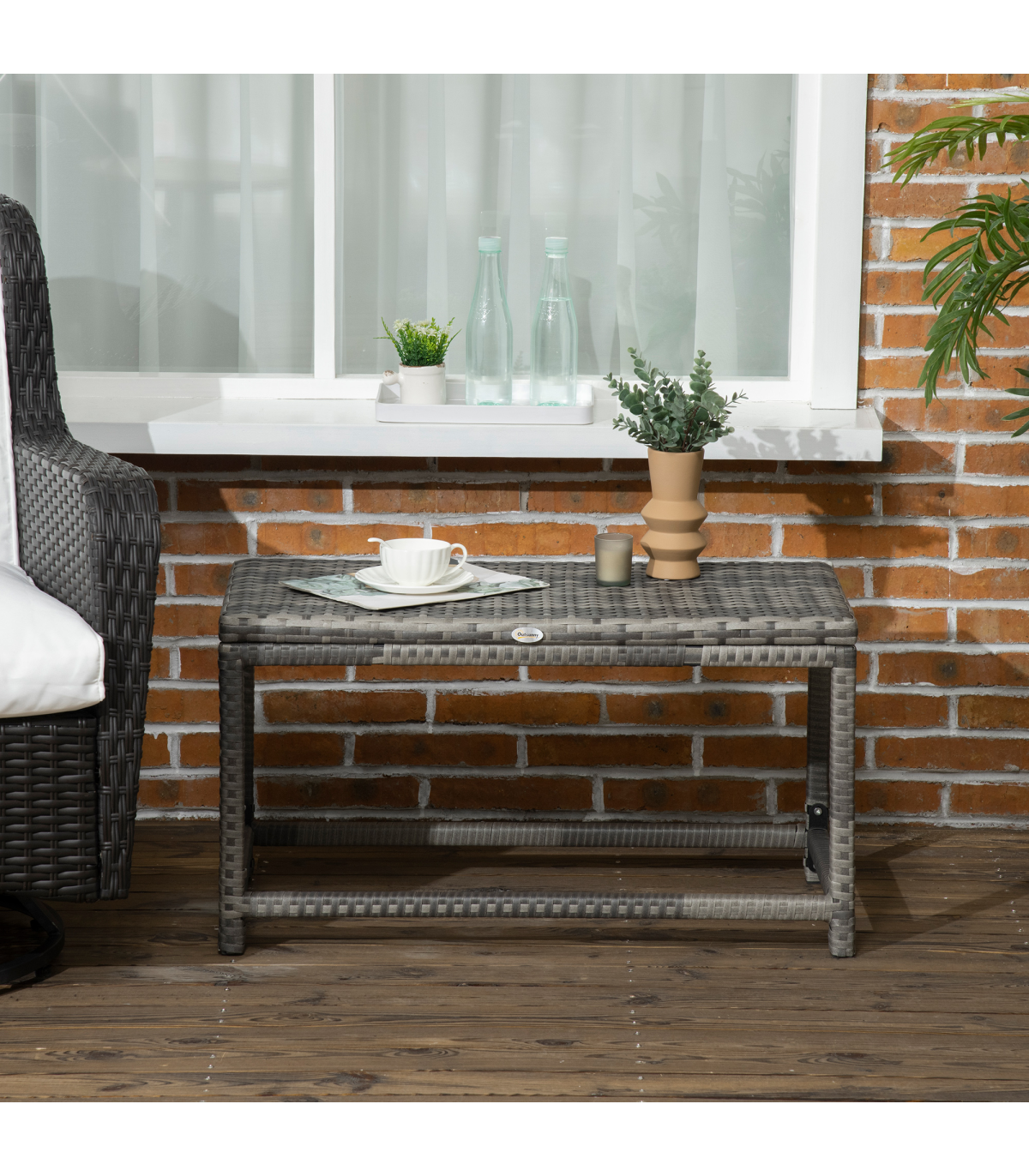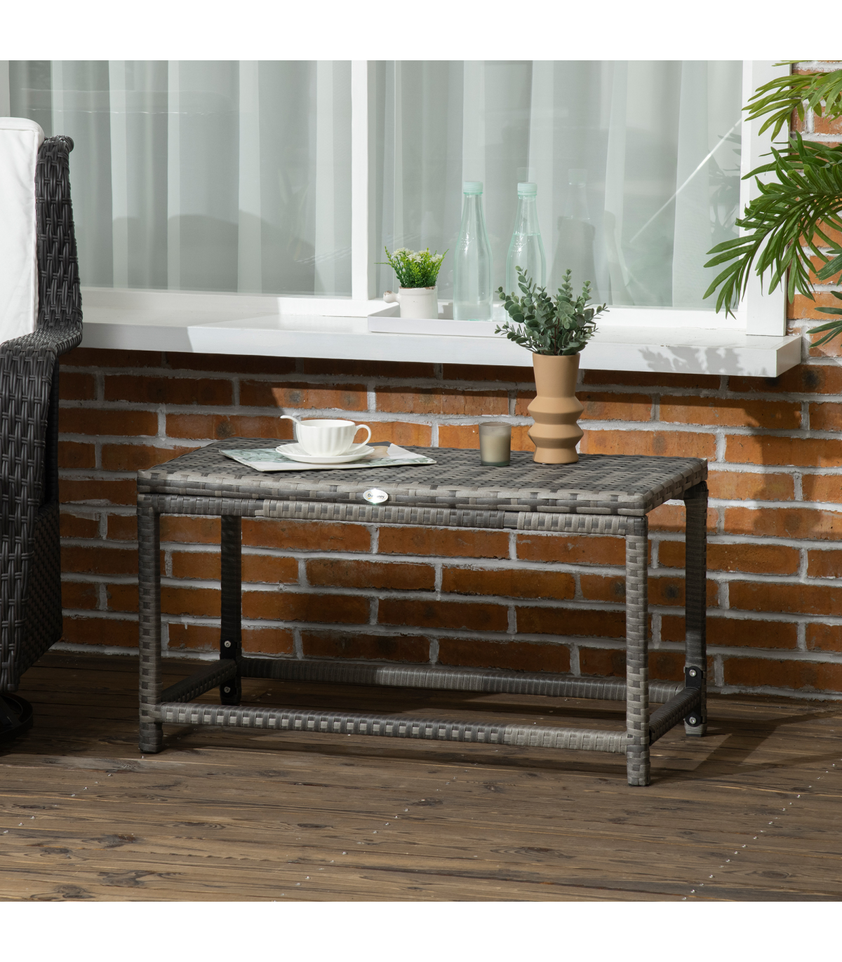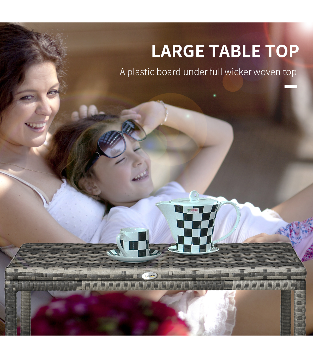 Outdoor Coffee Table w/ Plastic Board Under the Full Woven Table Top, Grey