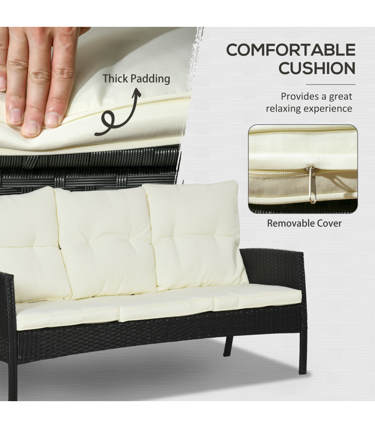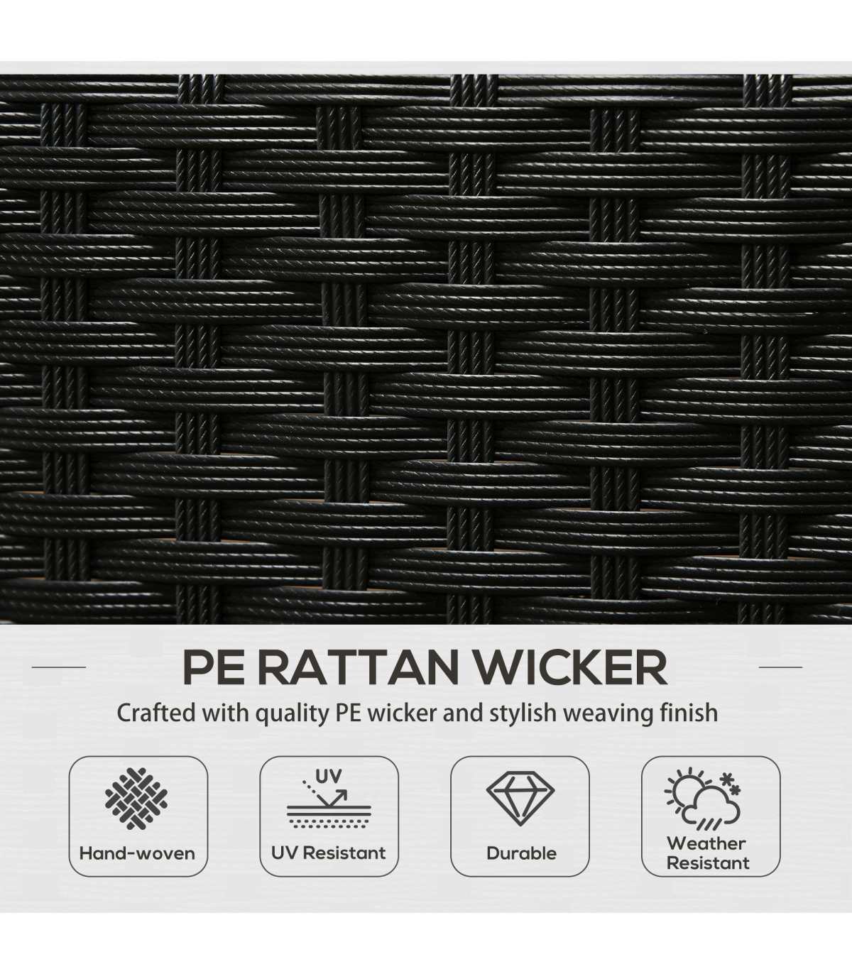 Your best company to gather round under the sun - say thanks to this Outsunny rattan garden sofa set. Each piece has a strong, powder coated steel frame, which is wrapped with plastic wicker - a stylish rattan look, which also protects the steel frame. Set comes with two armchairs, two footstools, a three-seater sofa and a matching coffee table. All seats and footstool come with padded cushions for comfort. Note: two people required to build this set.