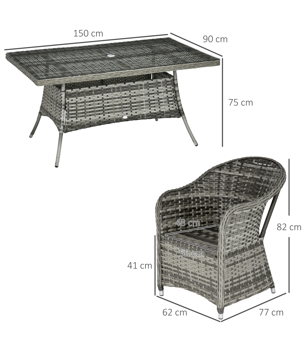 Outsunny 7 Pieces Rattan Dining Sets w/ Tempered Glass Umbrella Hole Table