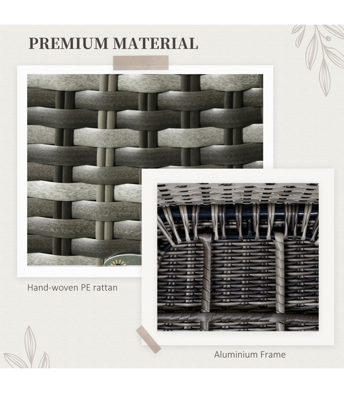 Bring everyone outside this season with this Outsunny rattan sofa dining set. The corner rattan dining set includes six chairs and a large table, making it ideal for entertaining guests. Each corner is made of tough aluminium wrapped in PE wicker for a garden-ready look that is long-lasting and resistant to mild weather damage. When the sun is shining, the rattan garden dining set's dining table can be equipped with a parasol to keep you comfortable and protected.