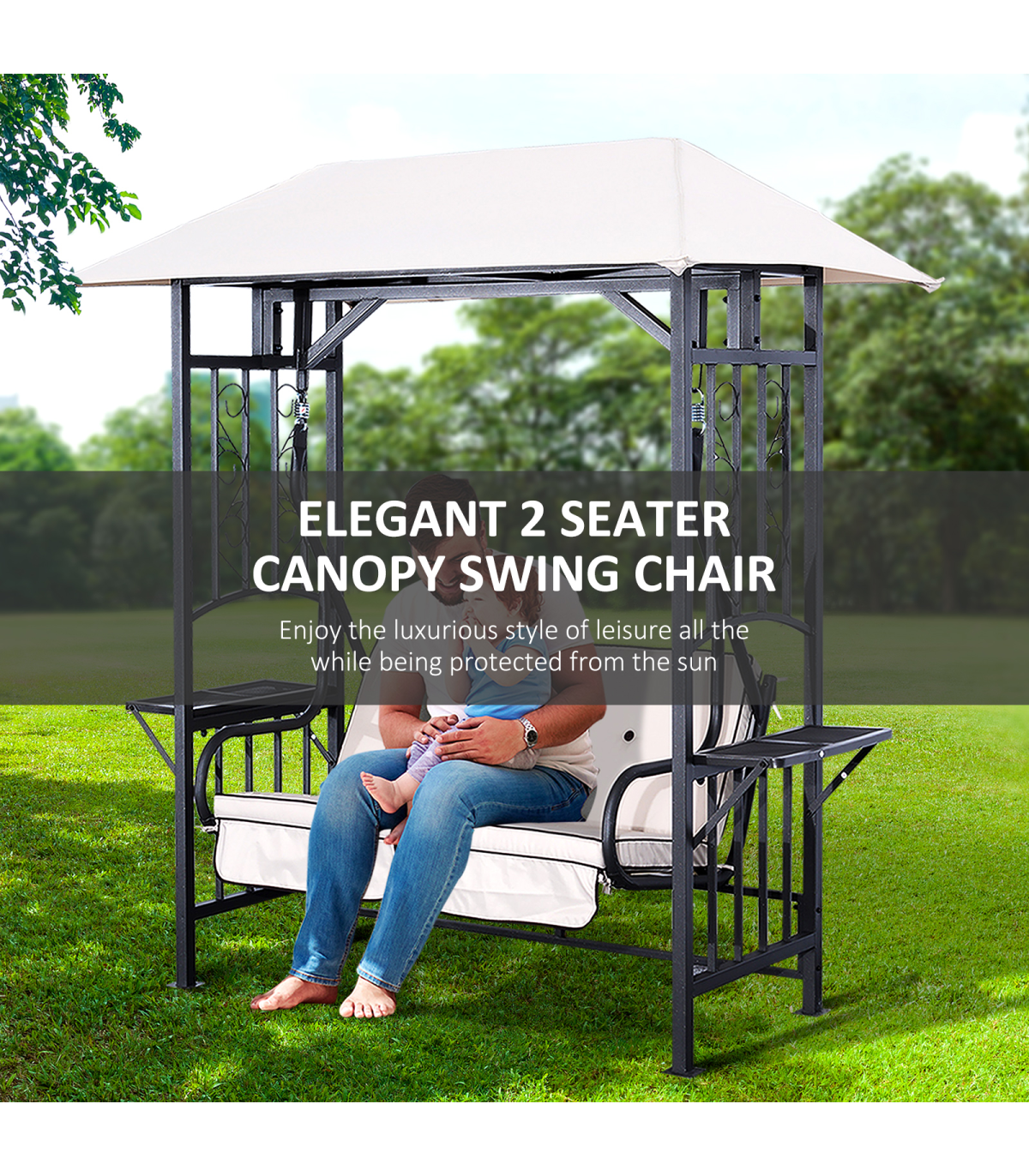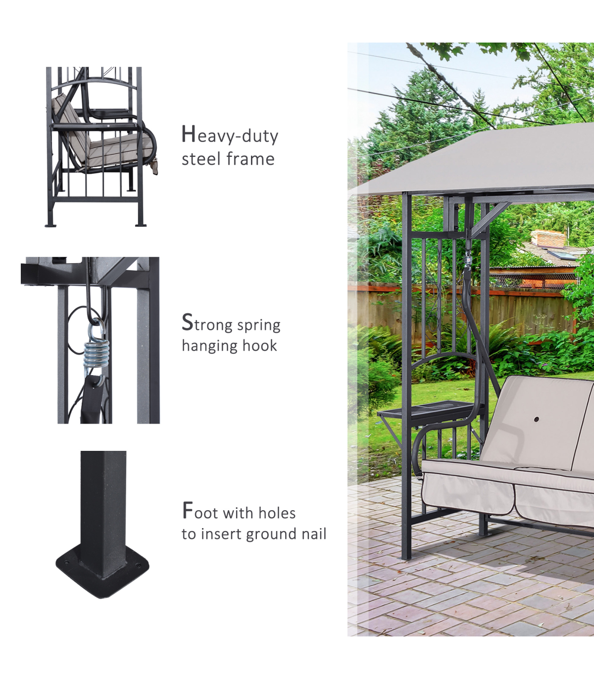 - 2-IN-1 DESIGN: It's a swing chair, it's also a gazebo! This Outsunny three person garden swing with canopy allows you to relax and swing while staying in the shade, making this metal garden swing bench ideal for any outdoor space, such as the patio, yard, lawn, poolside and more
