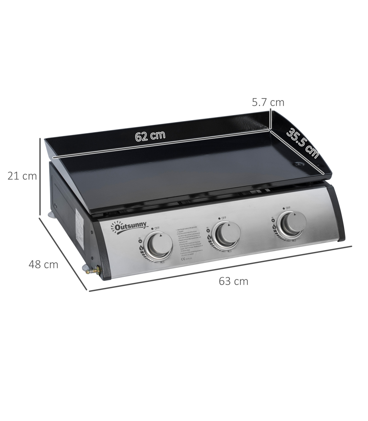 Outsunny Portable Gas Plancha BBQ Grill with 3 Stainless Steel Burner, 9kW