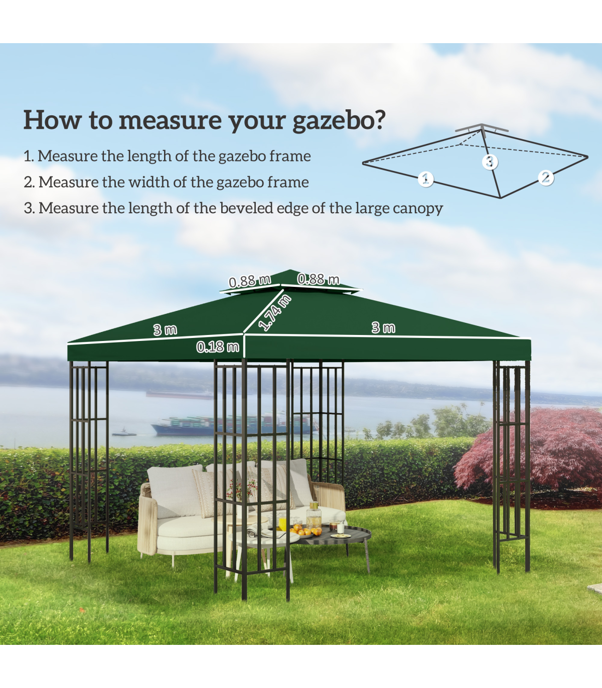 Outsunny 3(m) 2 Tier Garden Gazebo Top Cover Replacement Canopy Roof Dark Green