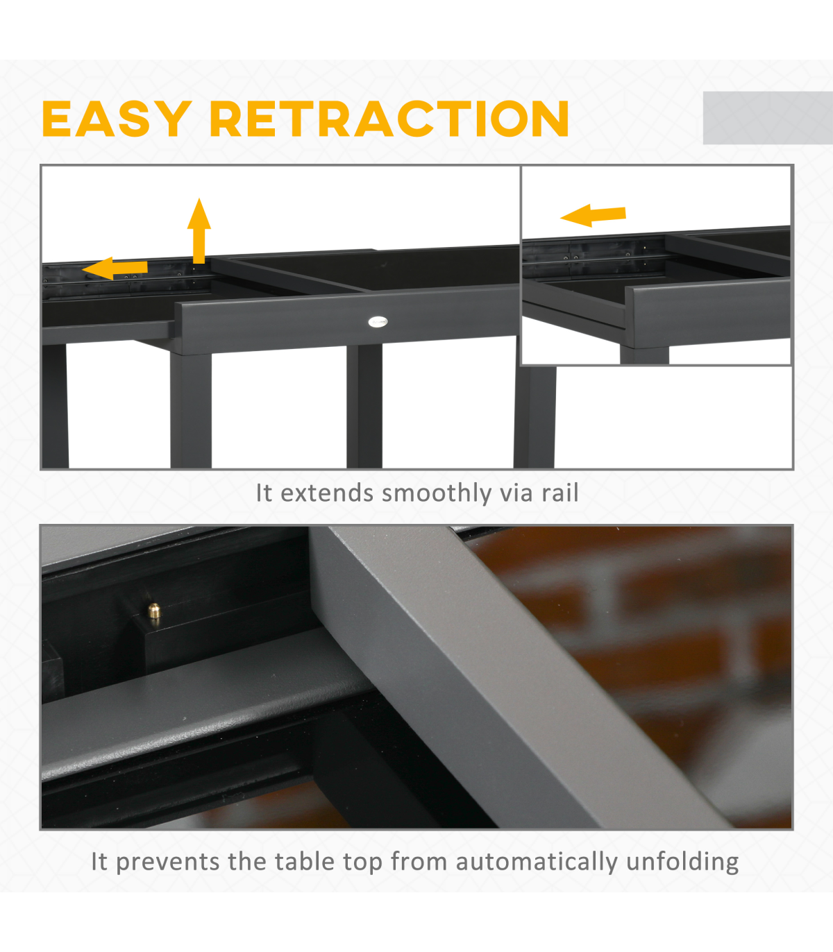 Extendable Outdoor Dining Table Patio Table with Aluminium Frame Black