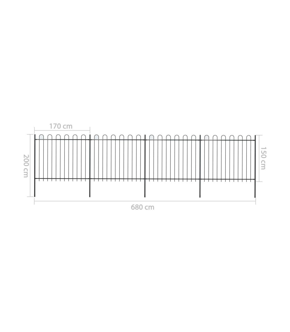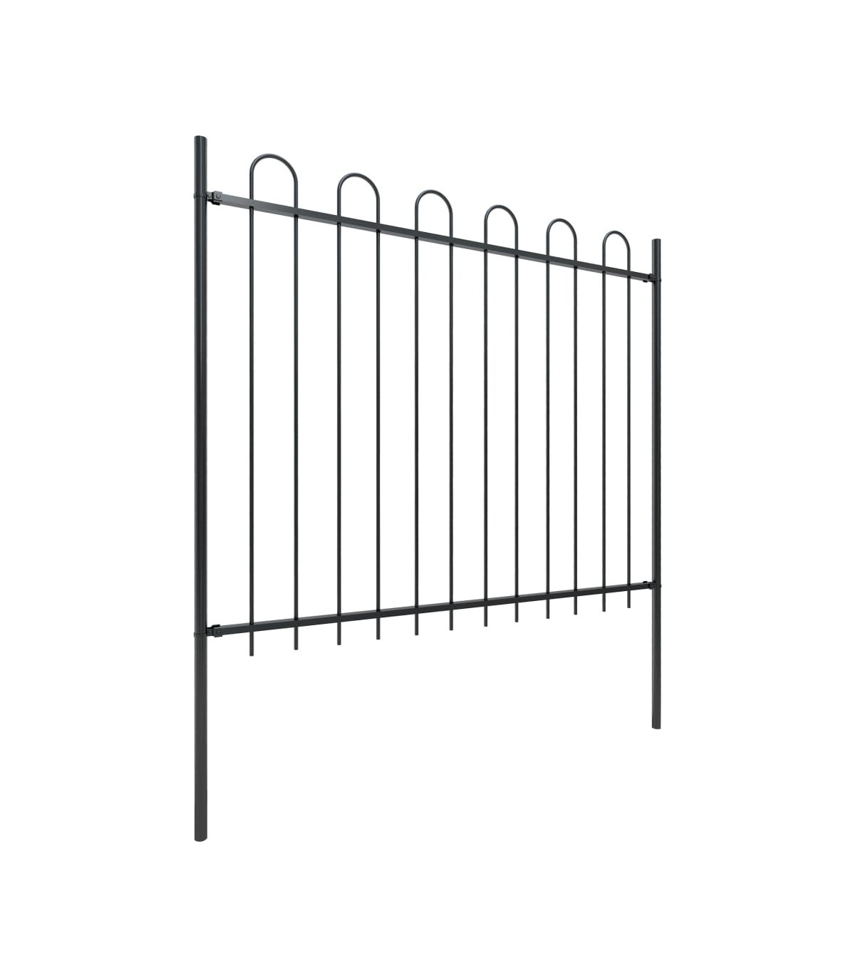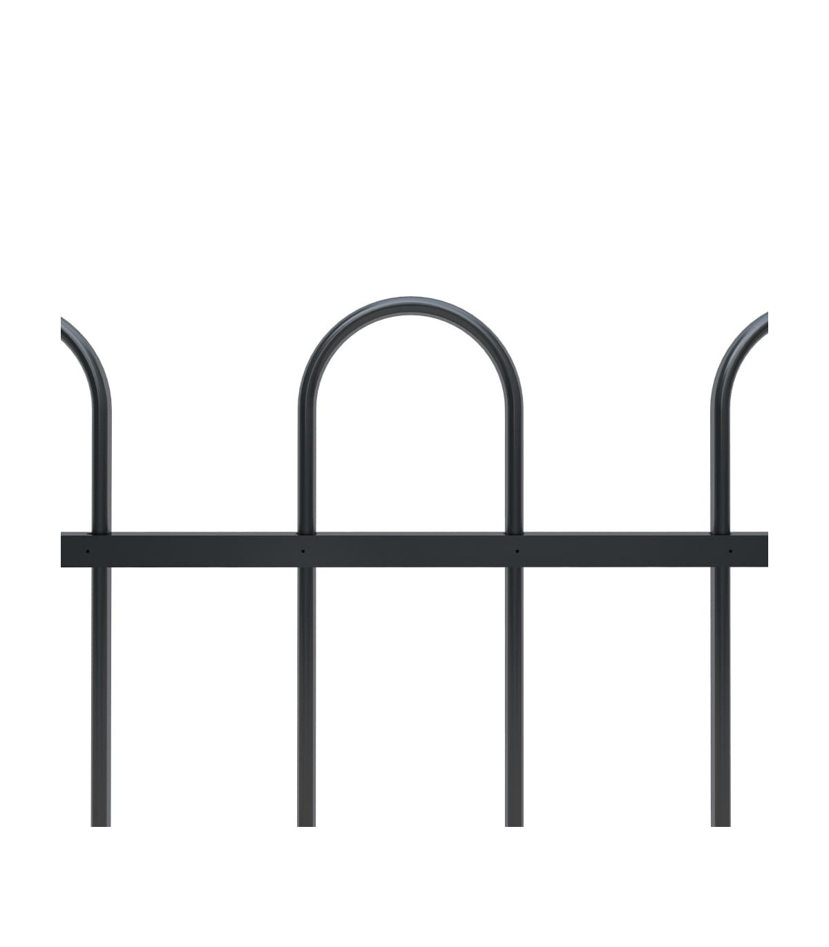 Create an elegant fence around your garden, home, or walkway with our garden fence! Our decorative steel garden fence, consisting of 4 fence panel and 5 posts, has a total length of 6.8 metres. It will form a sturdy, safe and maintenance-free perimeter barrier for your garden, home, or business property. With vertical bars with hoop top and strong horizontal brace as reinforcement to the frame, our garden fence will provide a high degree of security. Manufactured from heavy-duty, powder-coated steel, the outdoor fence is very strong and thus stable, sturdy and durable. Thanks to the included mounting materials, the garden fence is easy to assemble. Note: You can buy more sets to make the fence as long as you like.