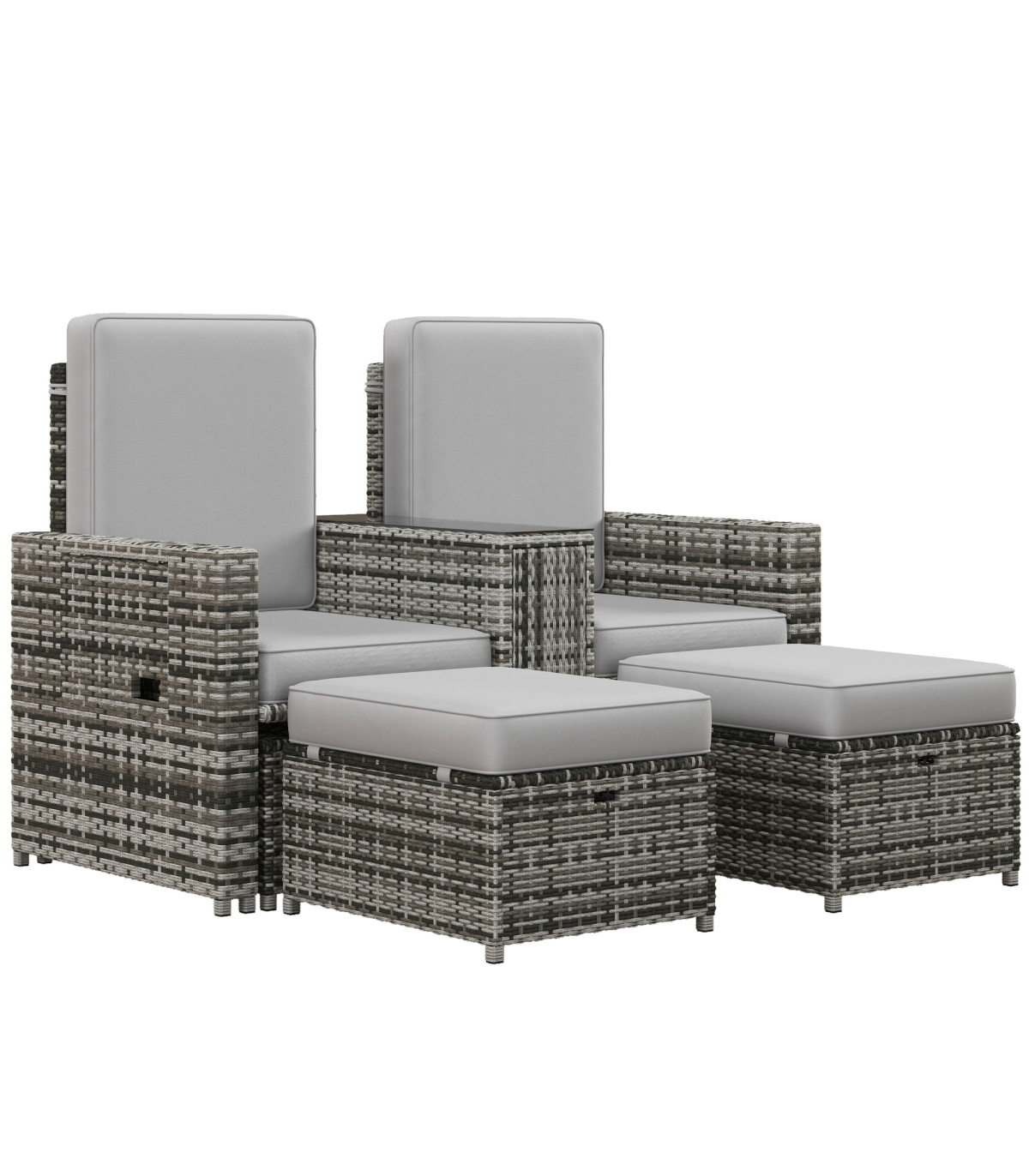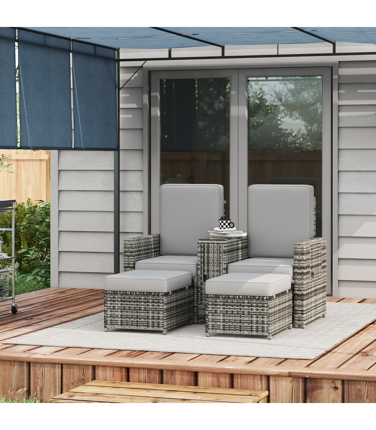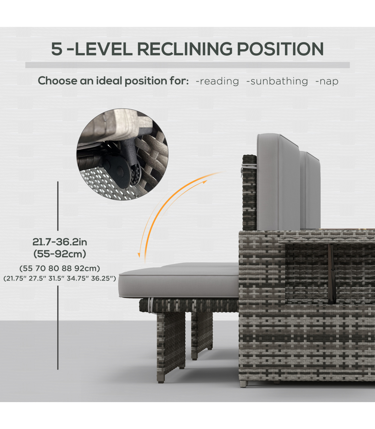 ● Each chair has a five-position adjustable back. Last position is completely flat