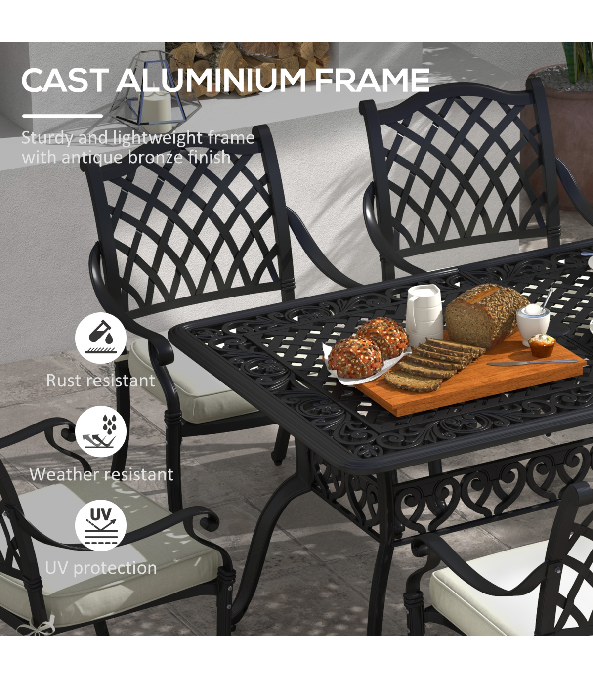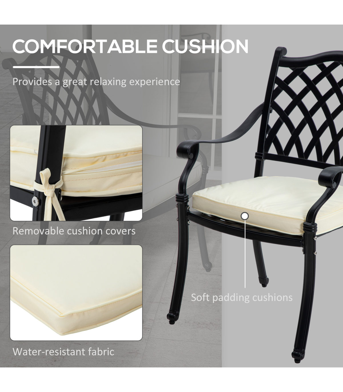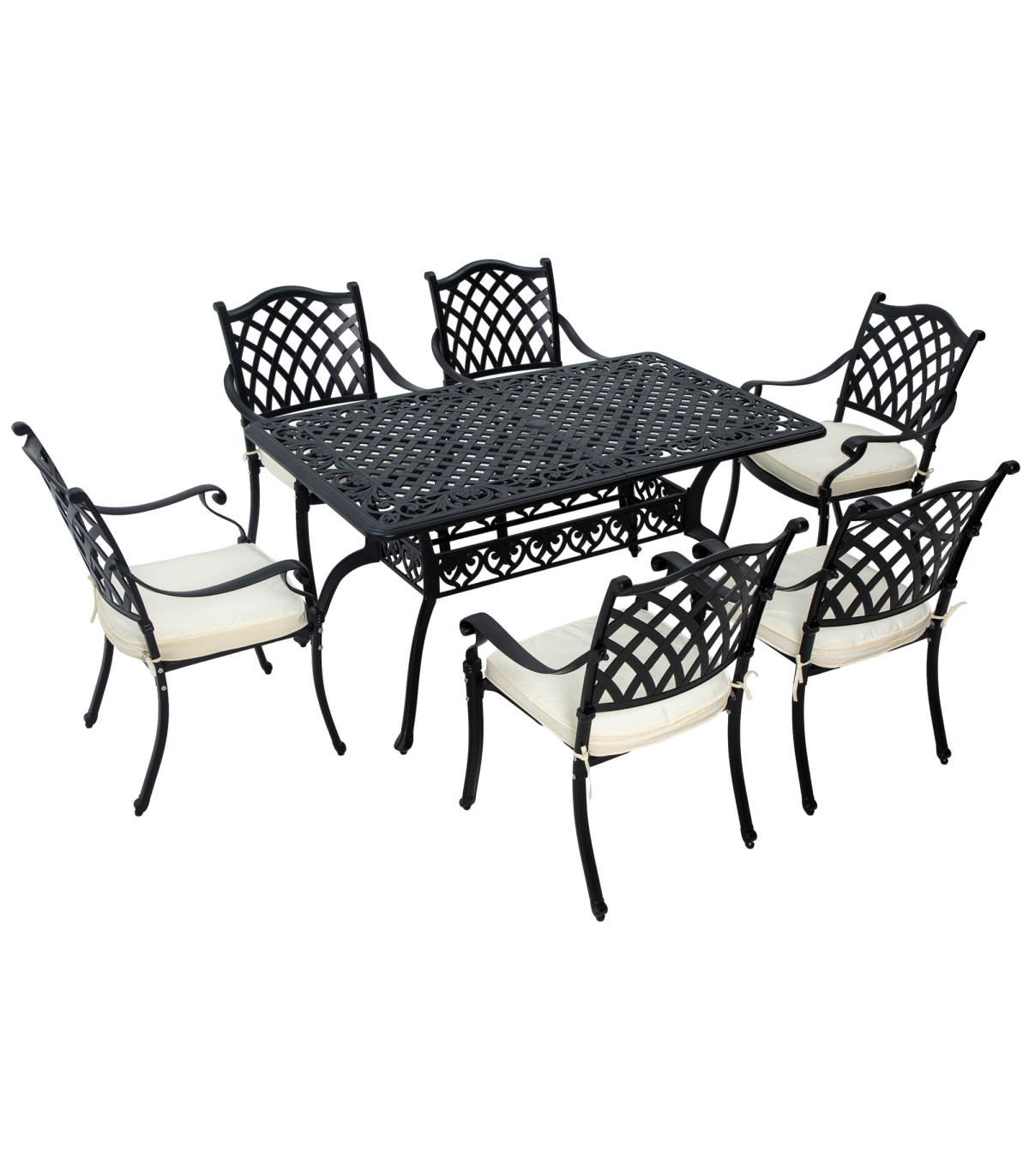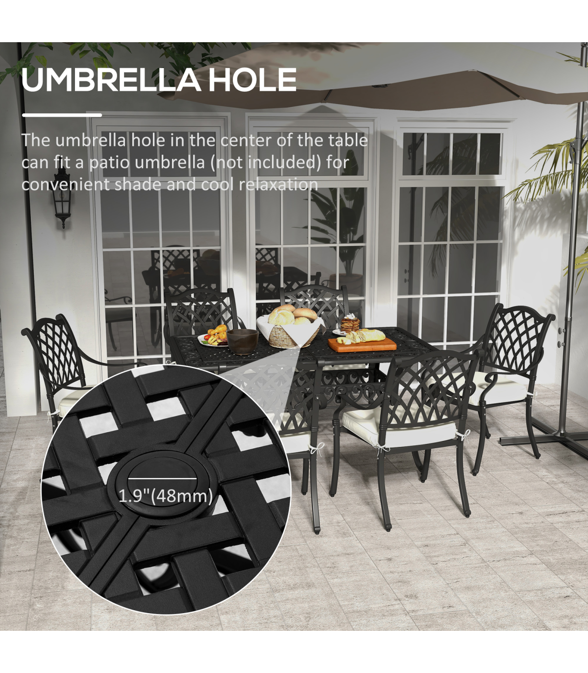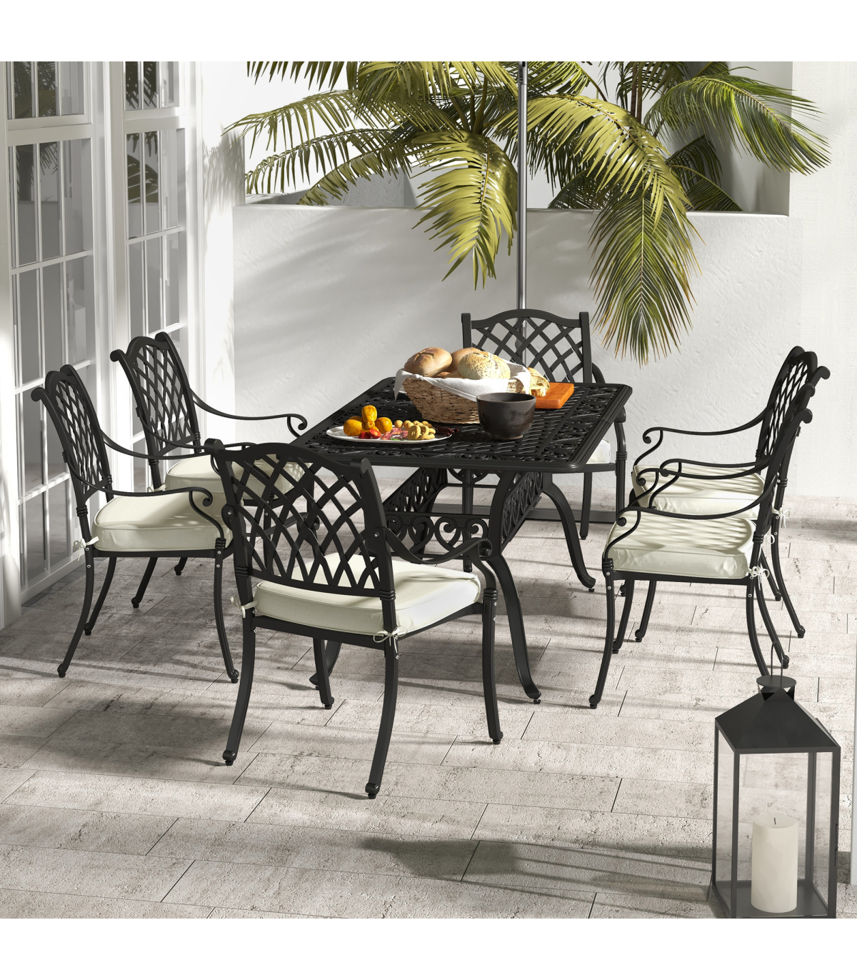 their curved backs and arms offer body support. Place your parasol in the middle table hole to keep protected from glaring sunlight.