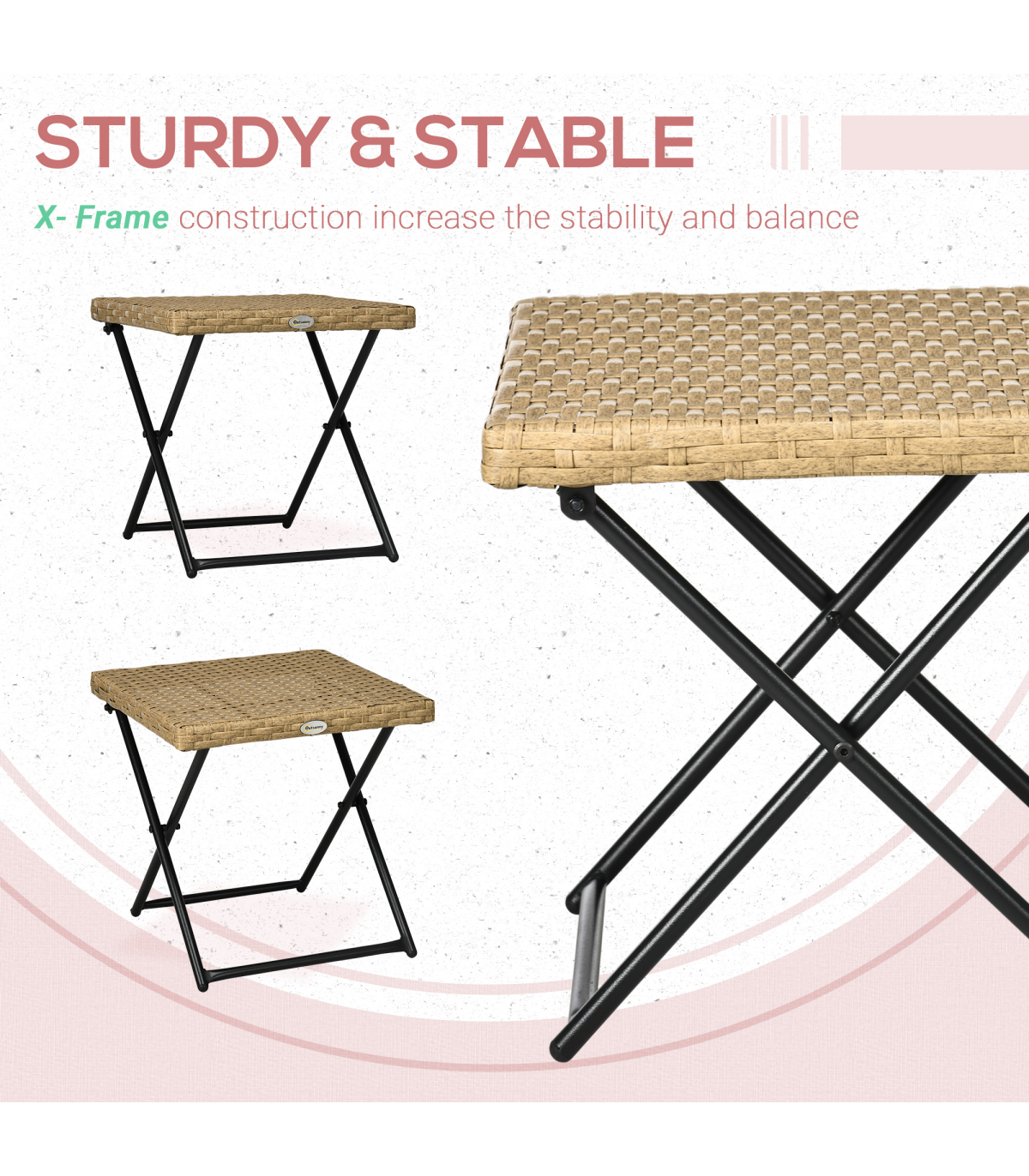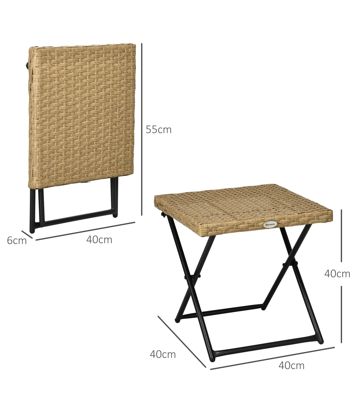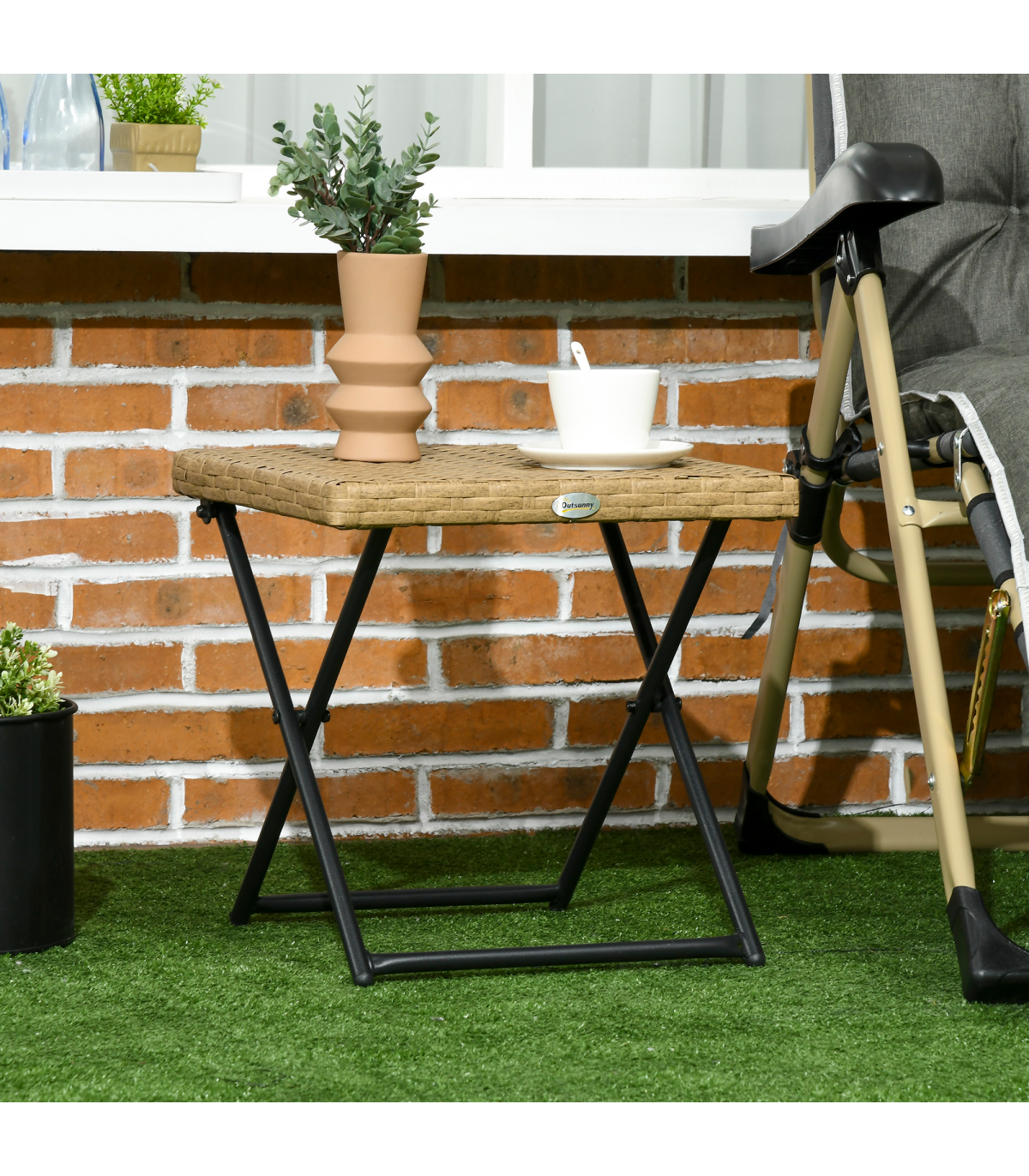 Outsunny Folding Square Rattan Coffee Table, Steel Frame Bistro Garden Natural