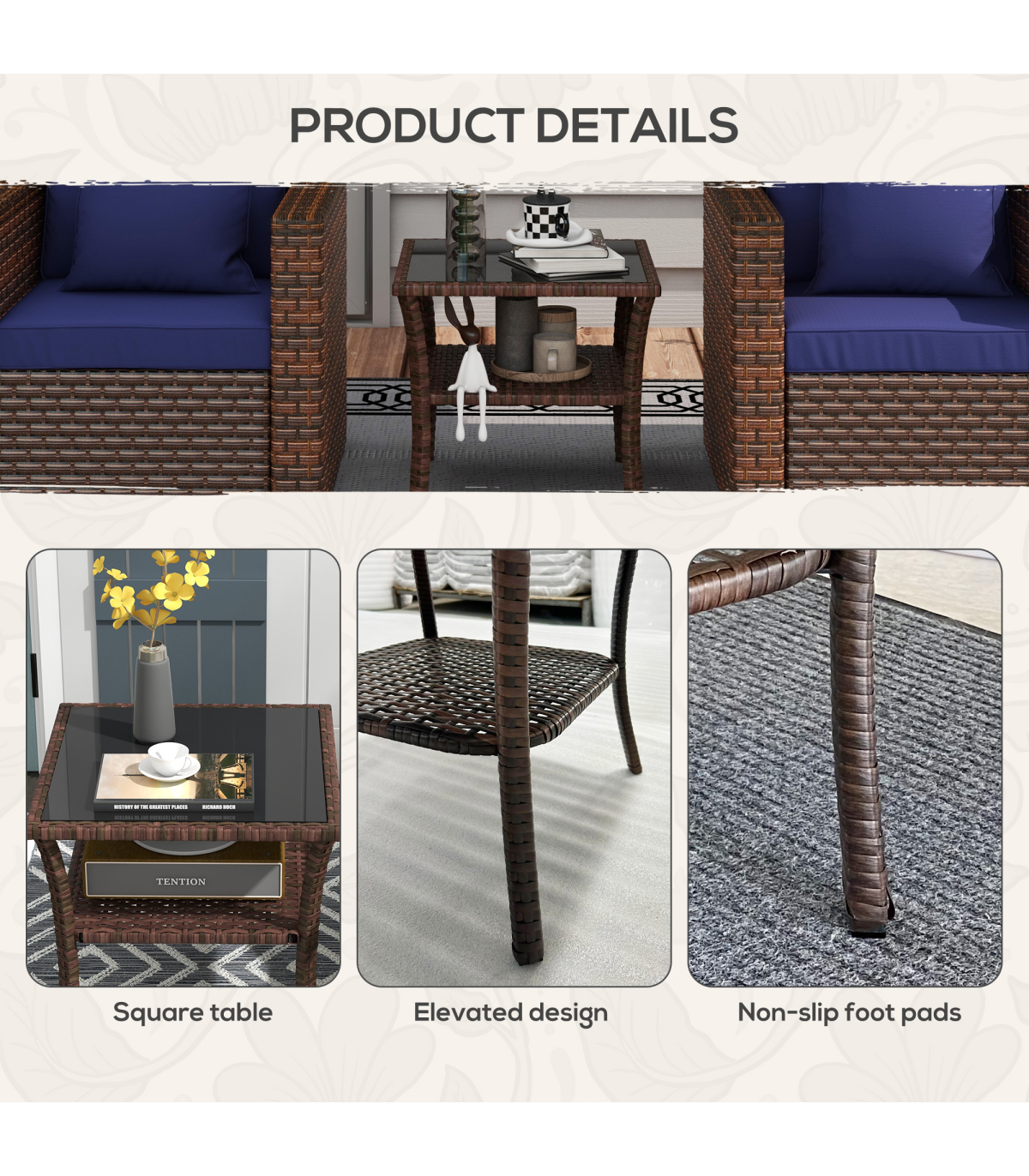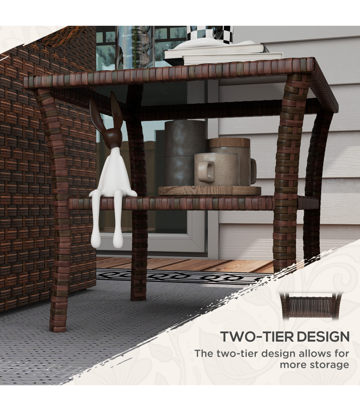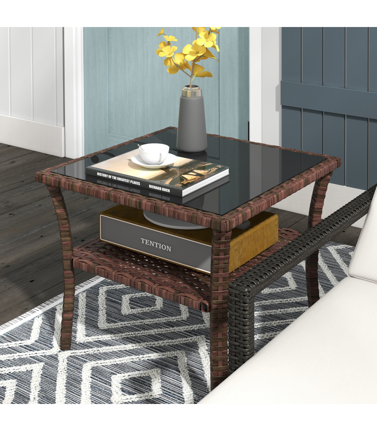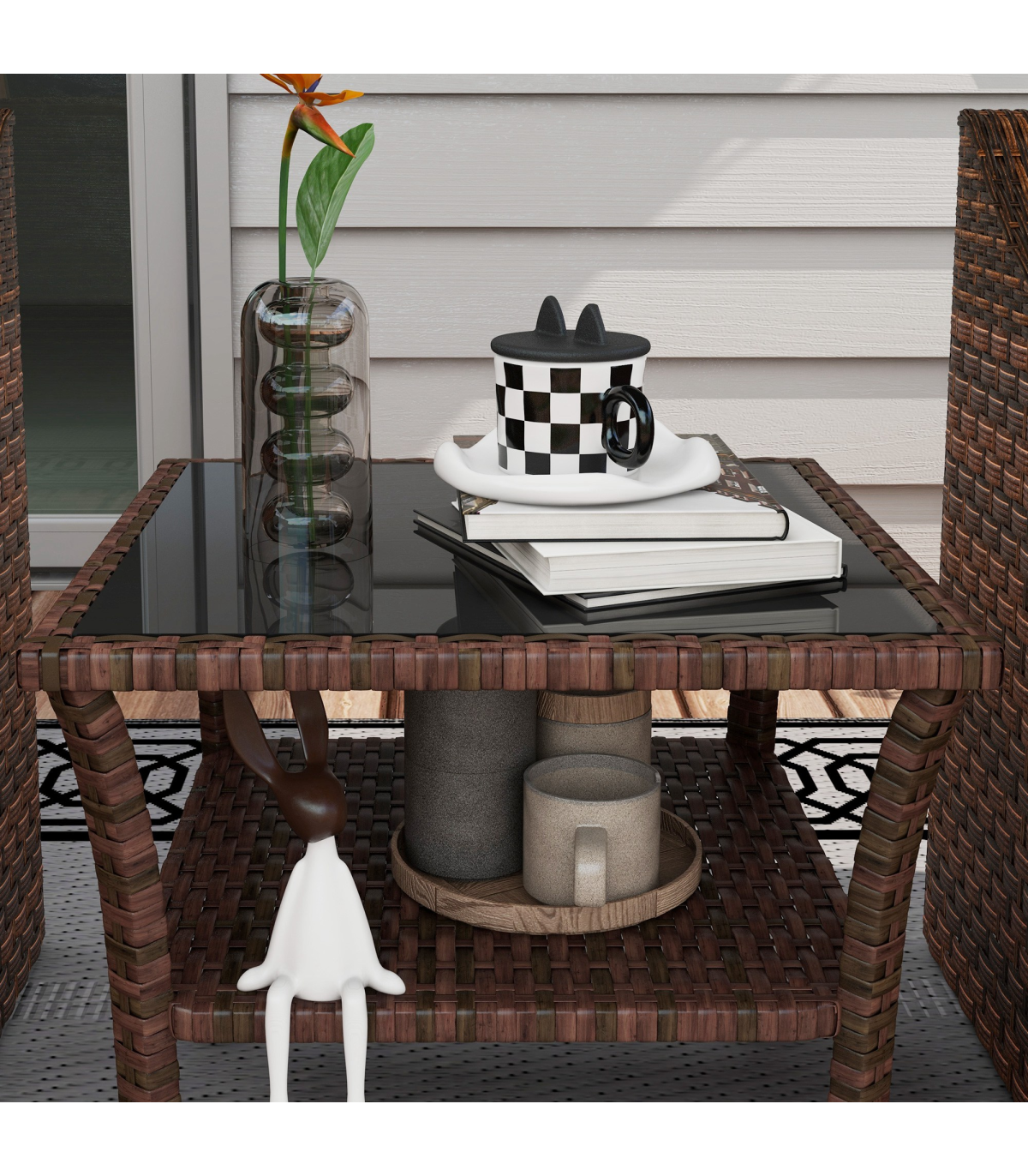 offering double the durability and a garden-ready look. The tempered glass tabletop means a safe and solid dining surface which can be easily wiped clean. With a bottom shelf, you can also keep small pieces close altogether.