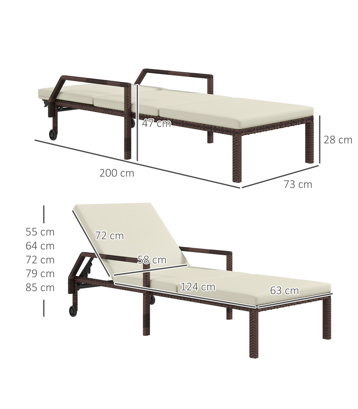 ? 5-Level Adjustable Height: 85cm, 79cm, 72cm, 64cm, 55cm