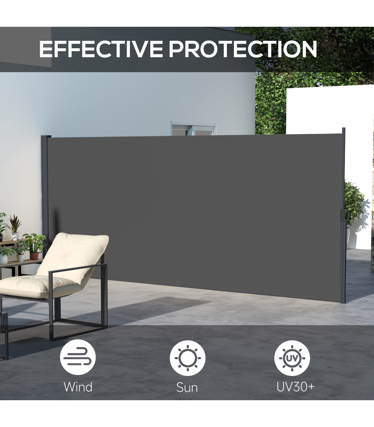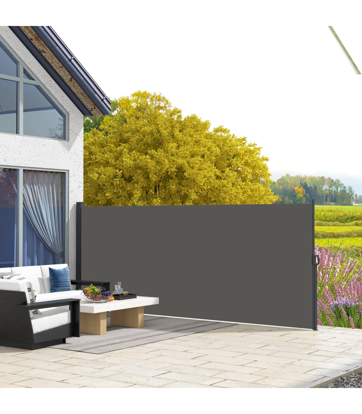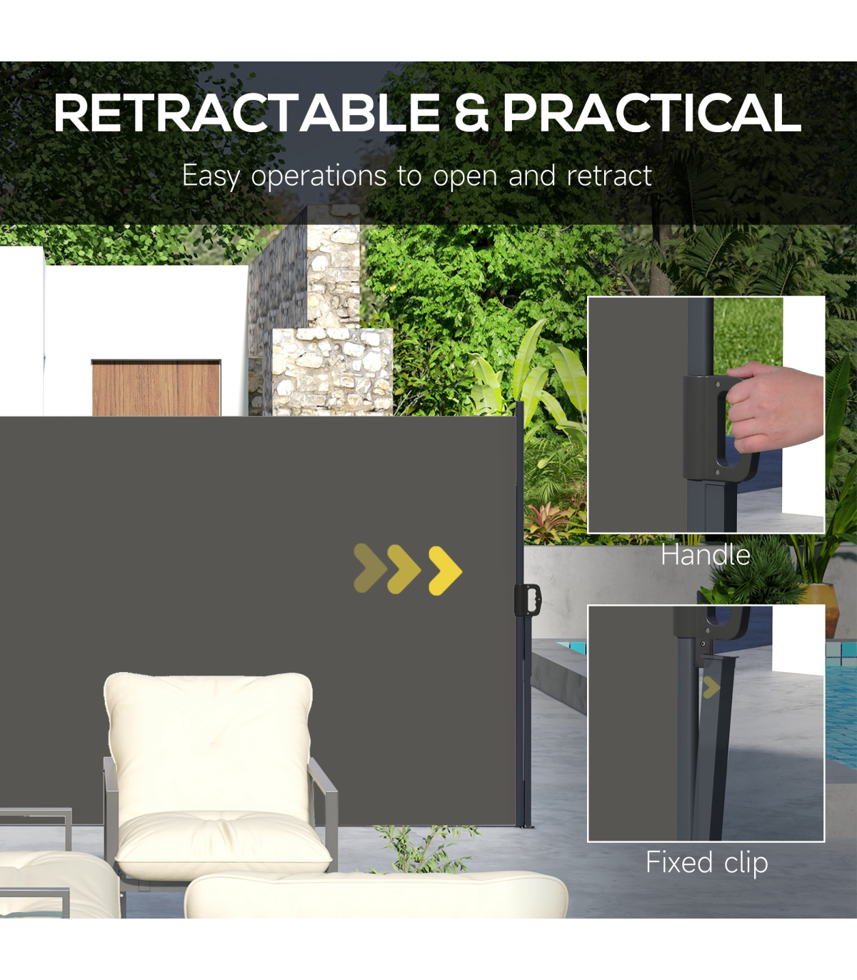 ? Retractable awning: pull the roller blind to a position you want