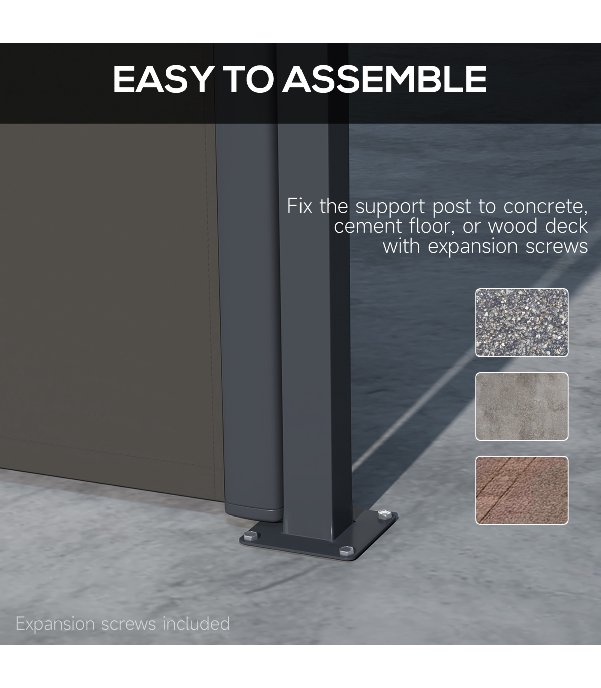 ? Fix the support post to concrete, cement floor or wood decking
