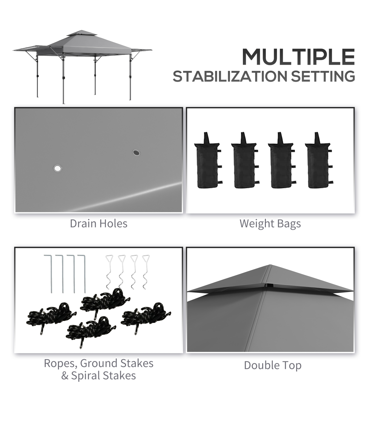 take it down before a major storm. Always use the included stakes, weights and guy ropes