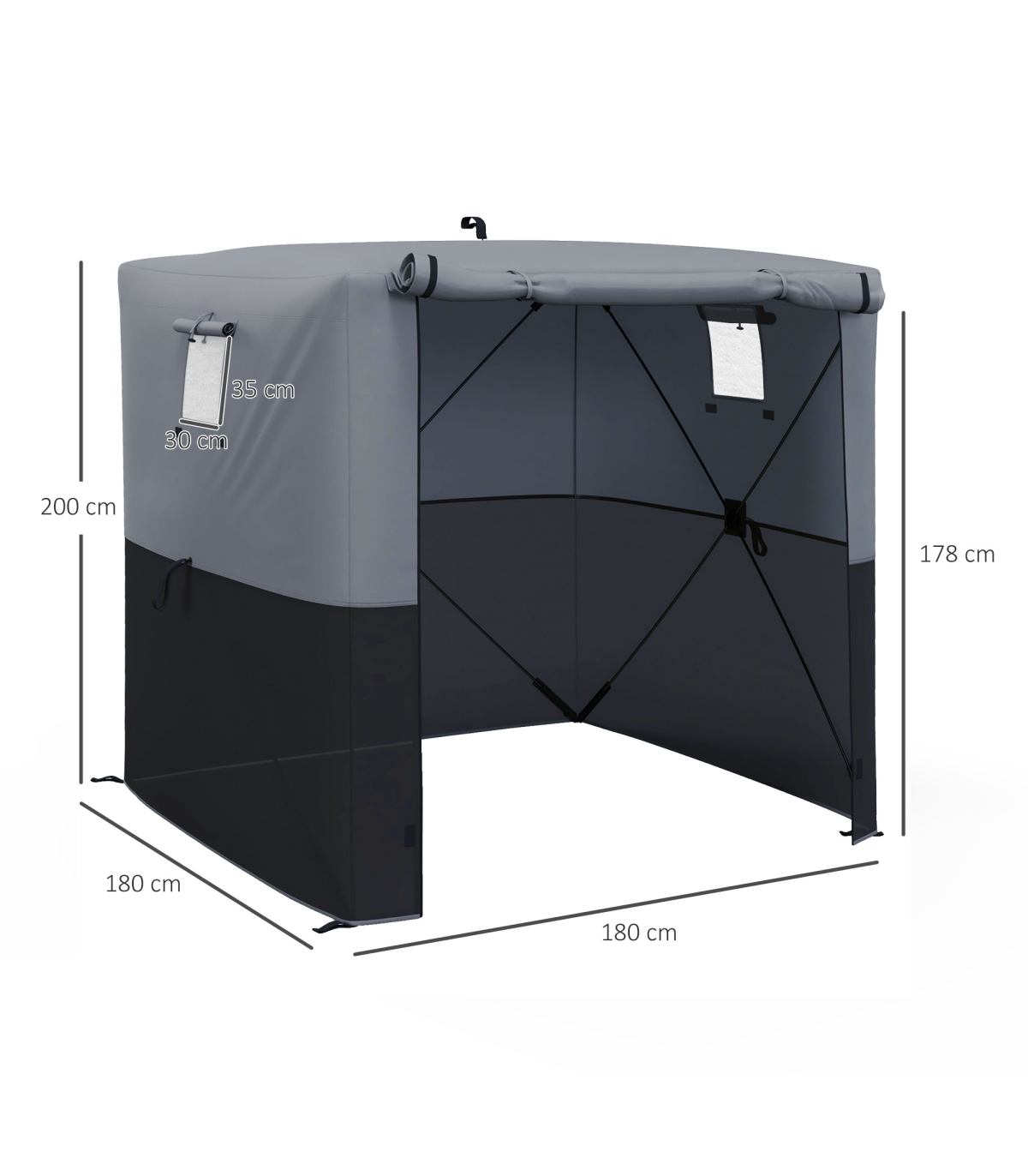 ? Overall Dimensions: 180L x 180W x 200Hcm