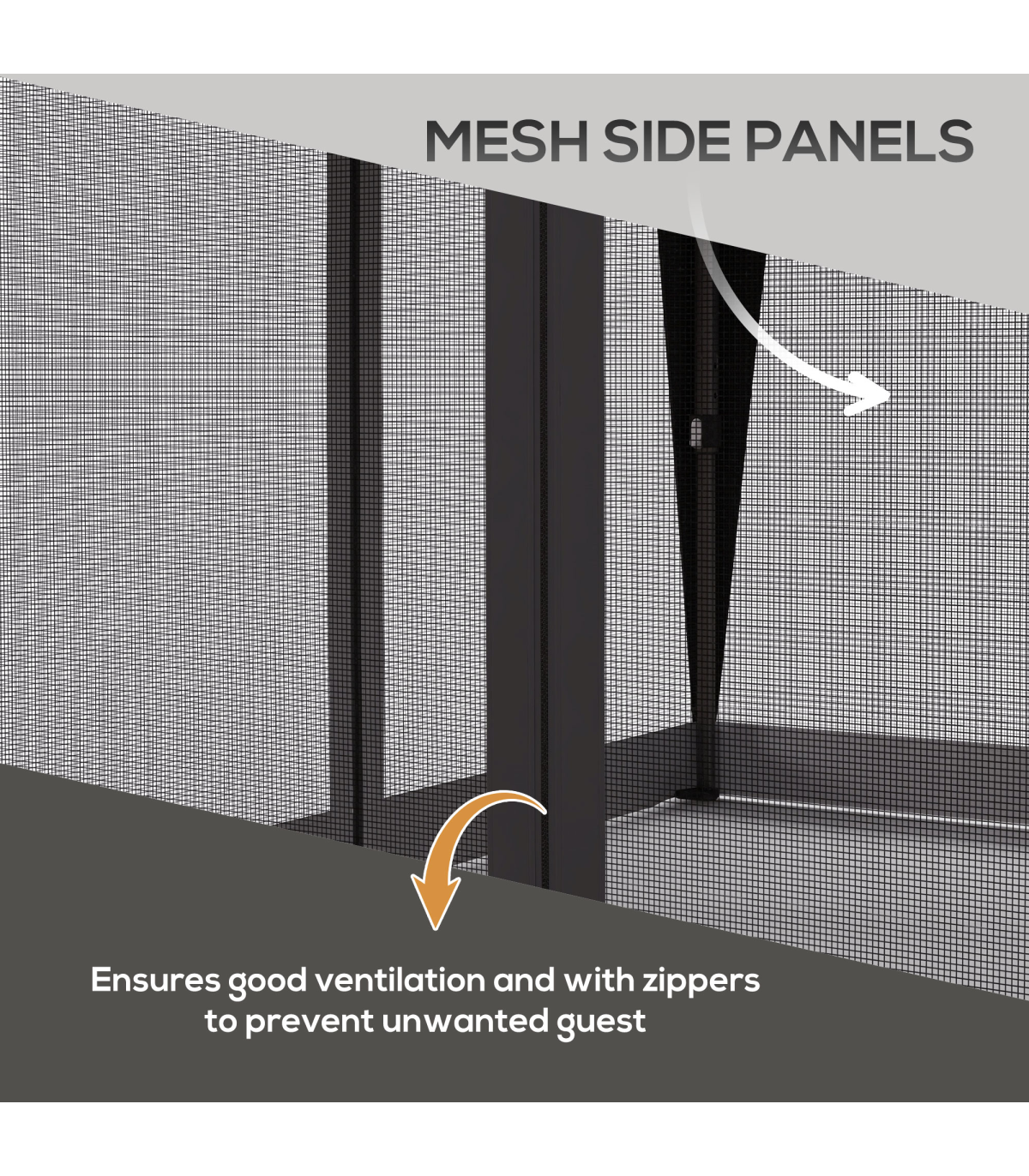 ? Full-sided mesh curtains with zippers provide comfortable and private space