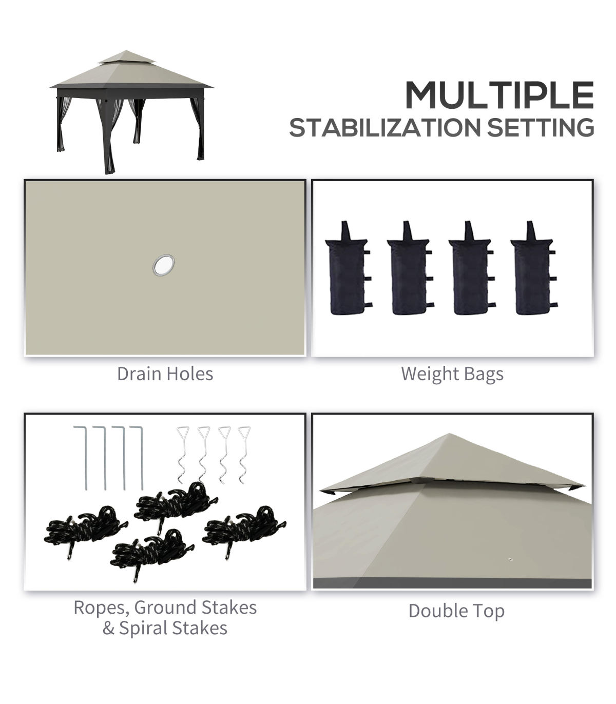 take it down before a major storm. Always use the included stakes, weights and guy ropes