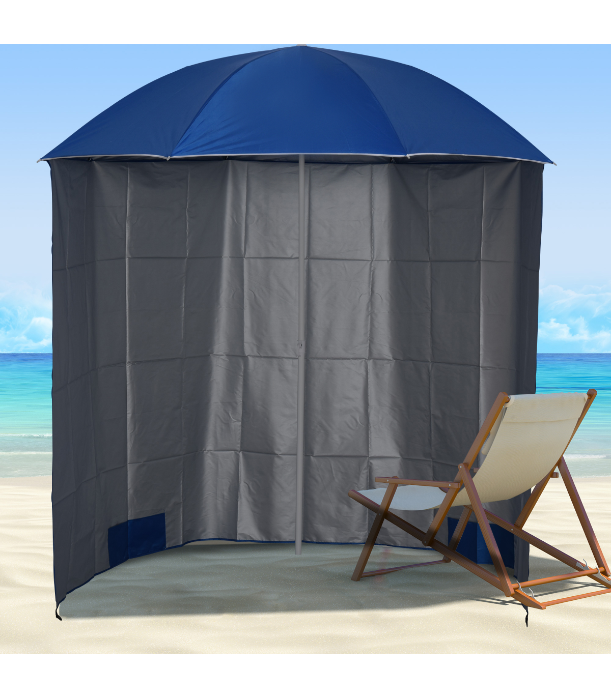 ? Ground stakes and sand bags secure the umbrella to the ground