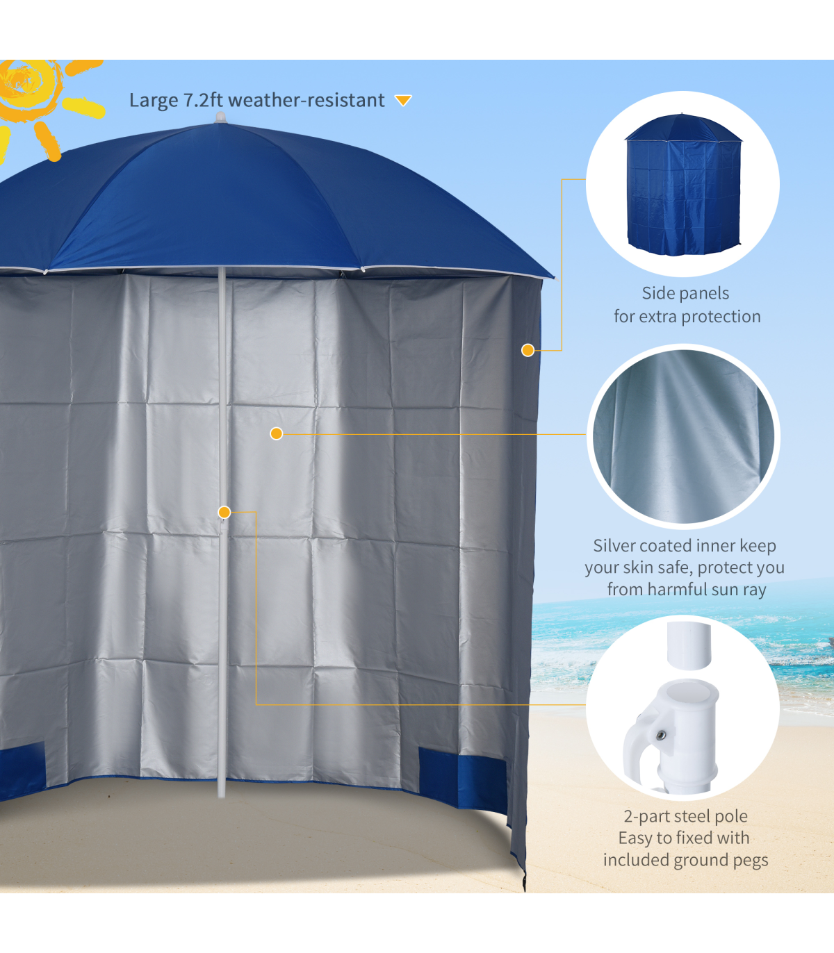 ? Silver coated PE cloth to help keep you skin safe. Side panels for extra protection