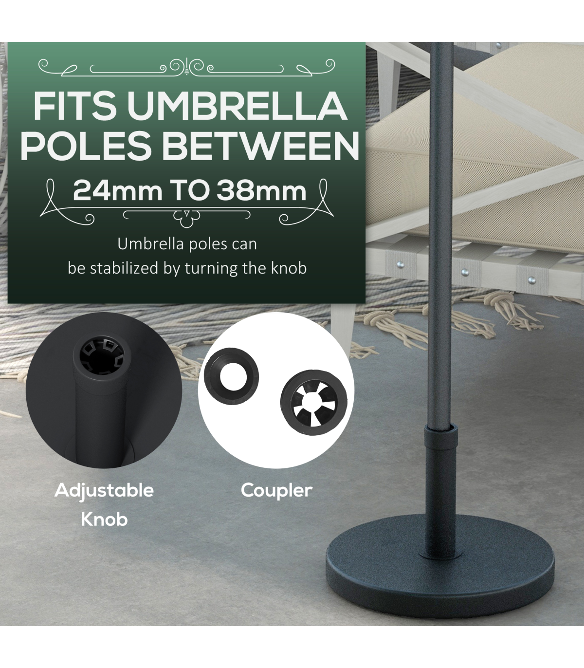 ? Suitable Outsunny umbrella parent SKU: X-84D-093, X-84D-097, please contact us for product links if you need them. ? NOTE: Please measure your umbrella pole in advance to ensure our base can fit well