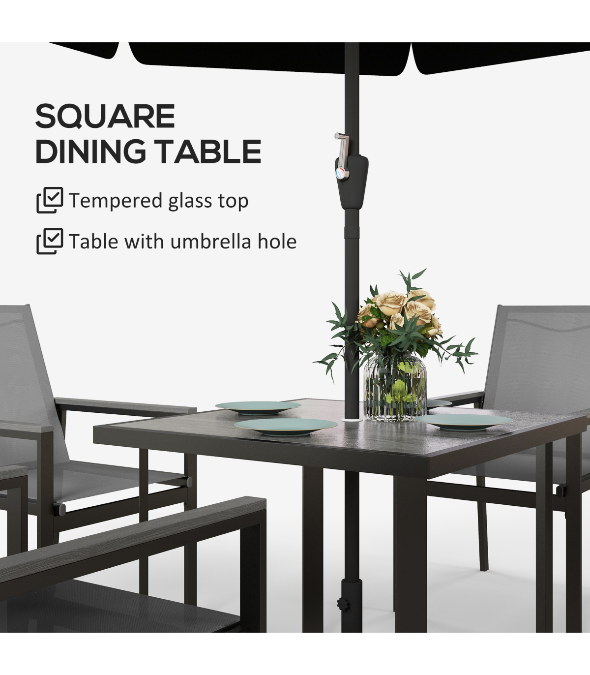 ? 5mm transparent tempered glass tabletop for durability and ease to clean