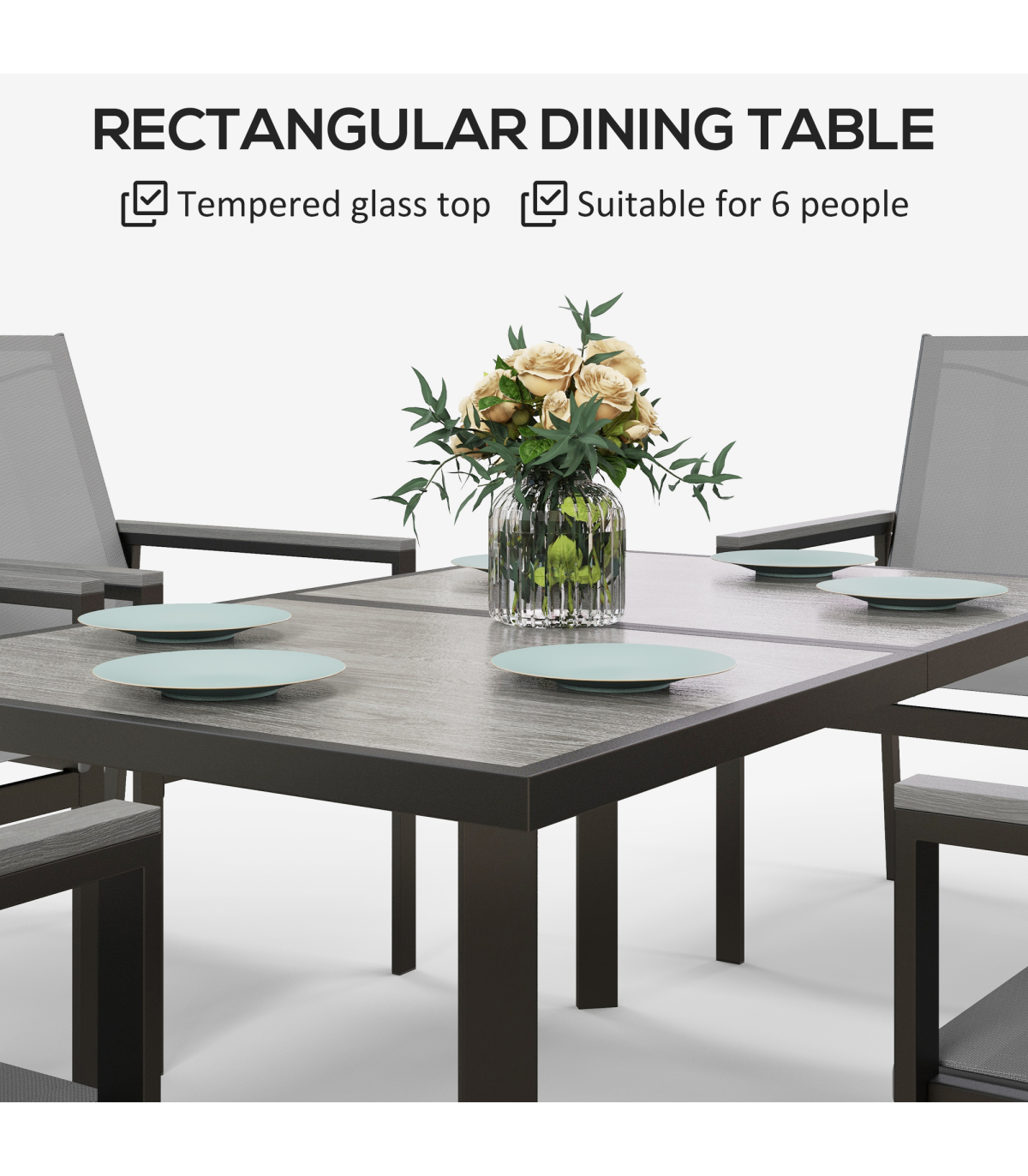 ? 5mm transparent tempered glass tabletop for durability and ease to clean