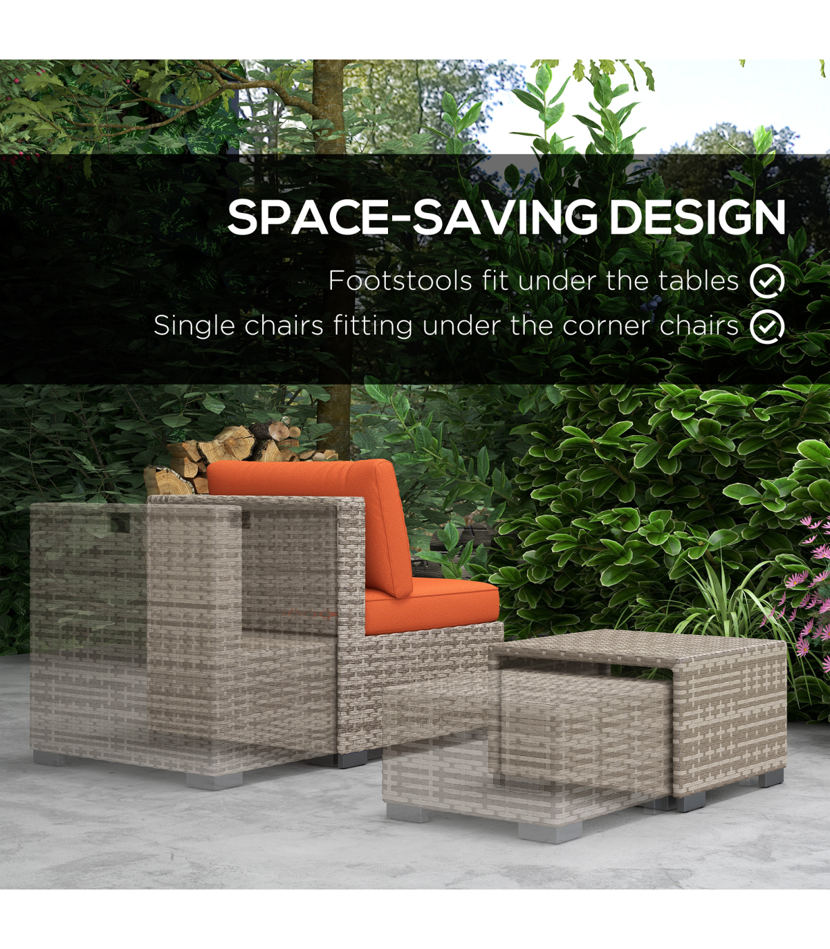 also creates a protective shell. Set comes with two armless chairs, two footstools and two square tables - seats up to six people. Compact design: footstools fit under the tables and armless chairs fit into the corner chairs.