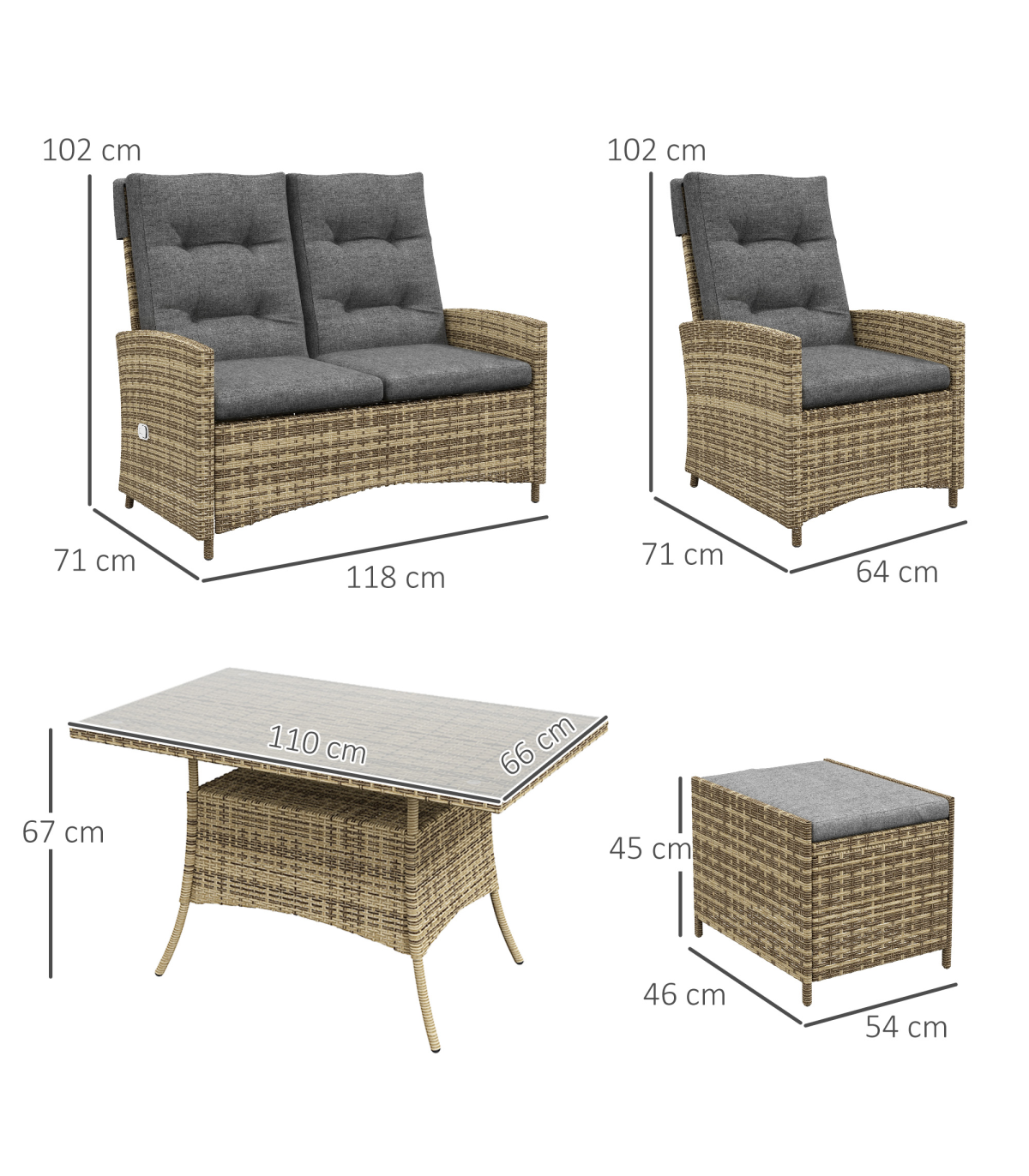 ● Powder coated aluminium frame for a strong core, wrapped in stylish plastic wicker