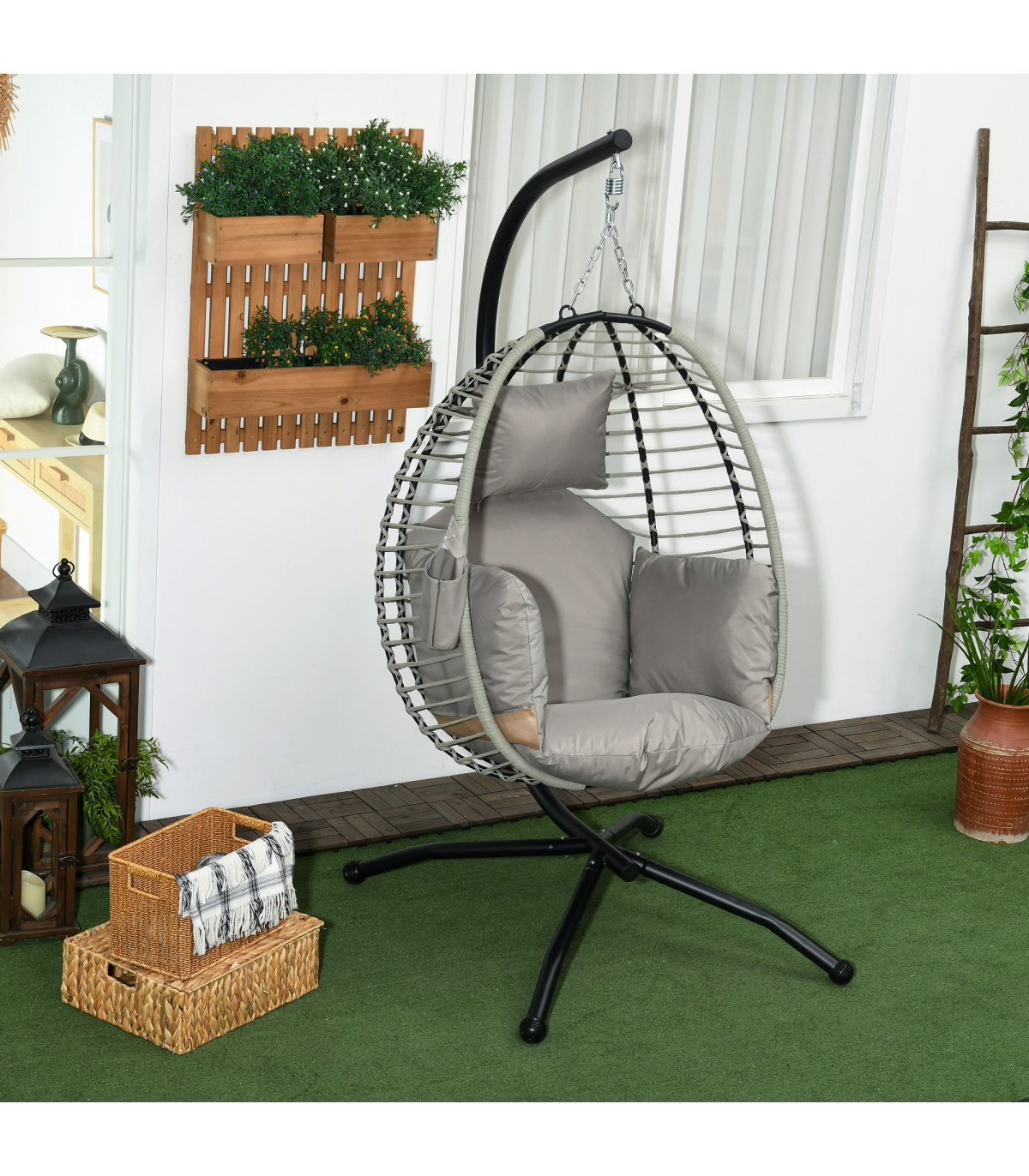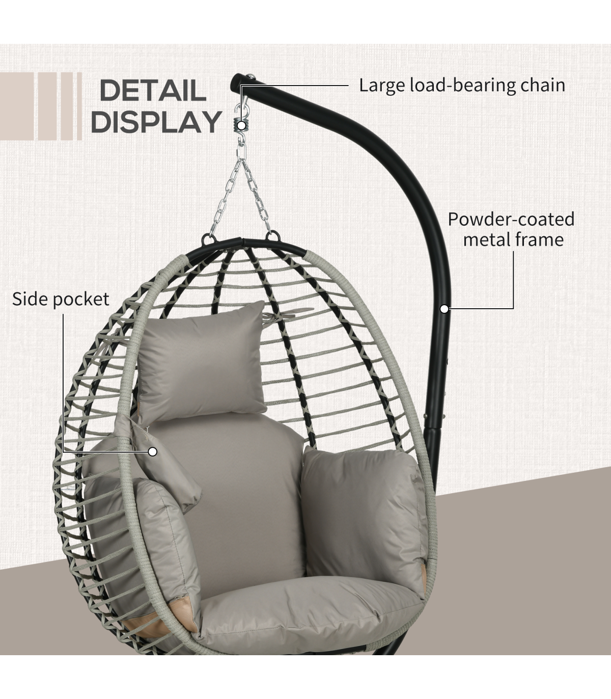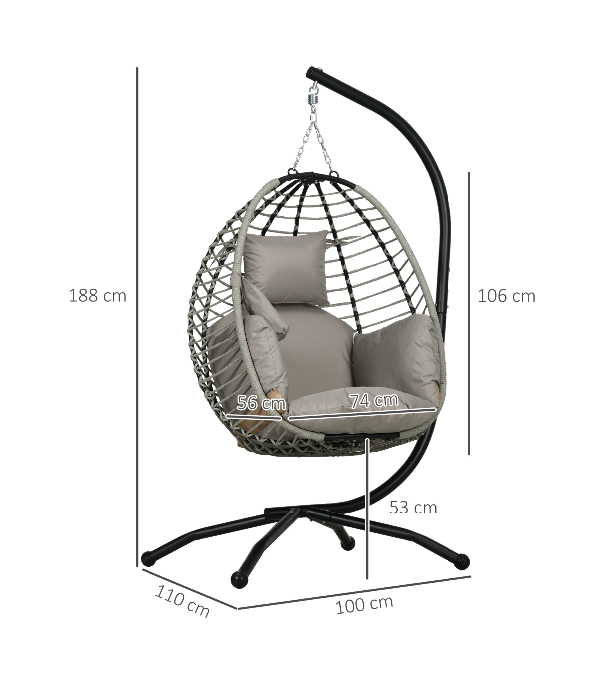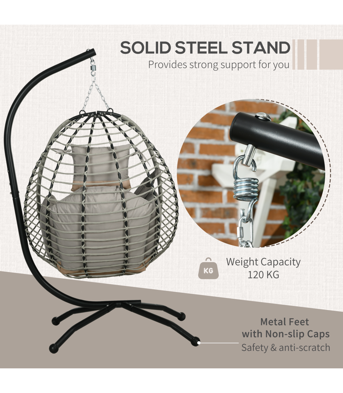 ● Powder coated steel frame is strong, with long legs for balance