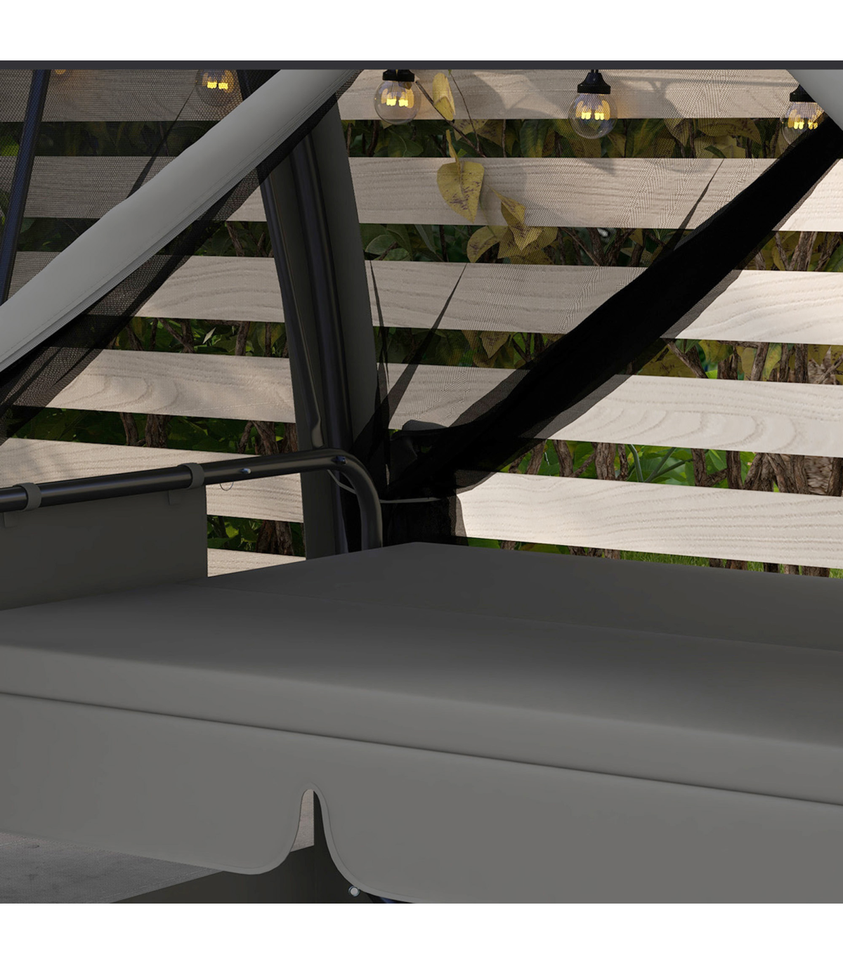 ● UV-resistant canopy, with mesh sides: create a private enclosure. Zipped doors for easy access