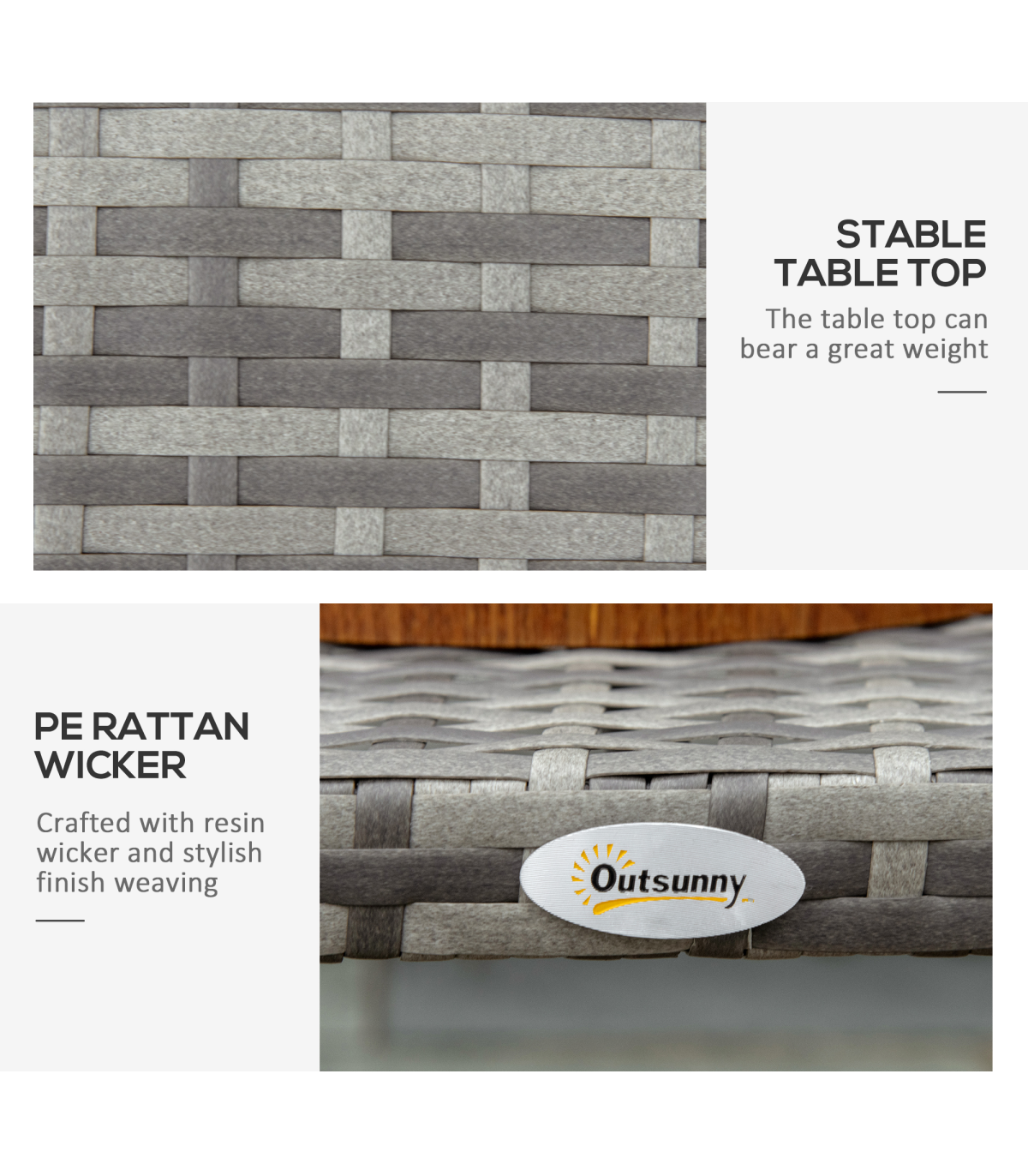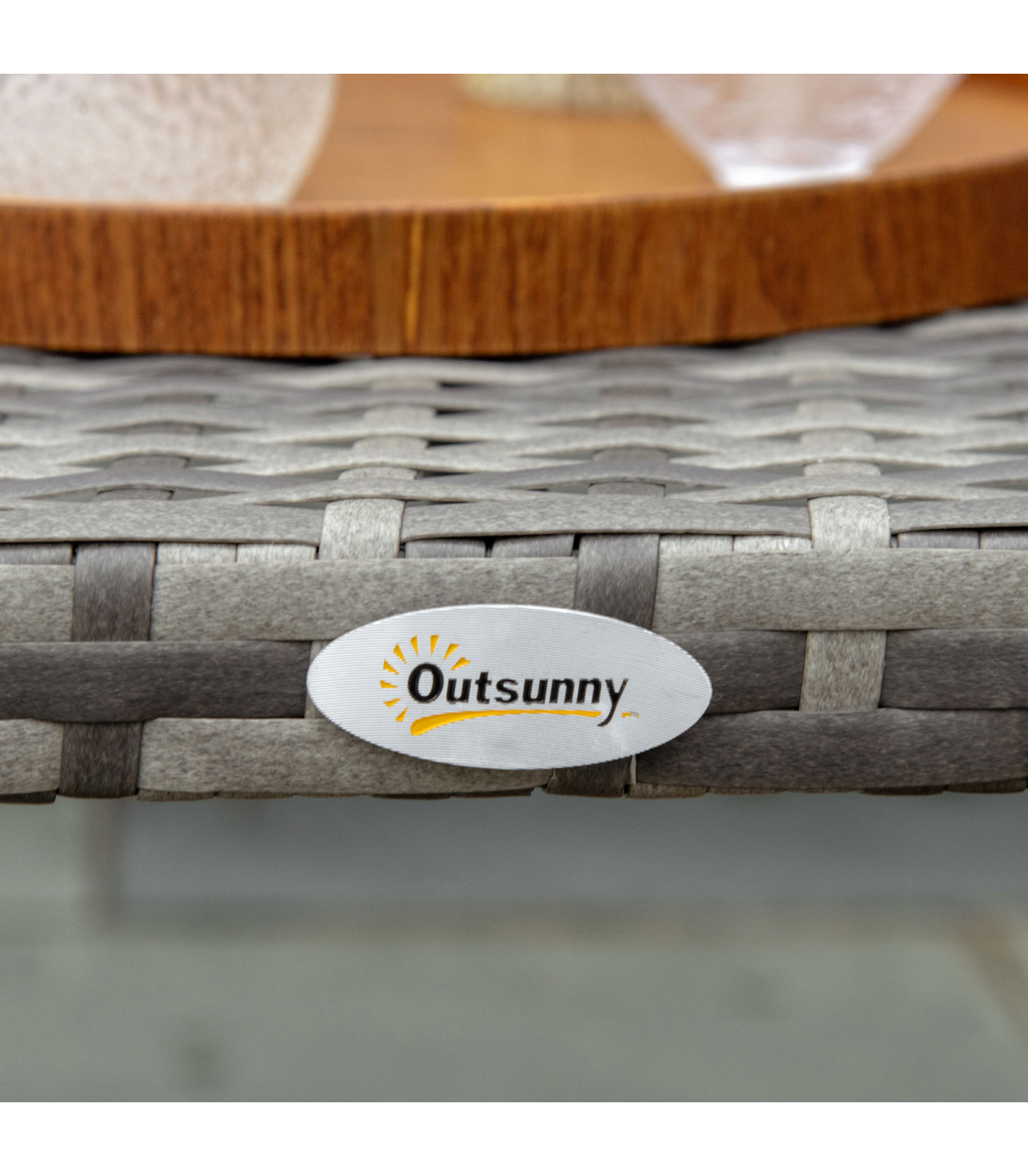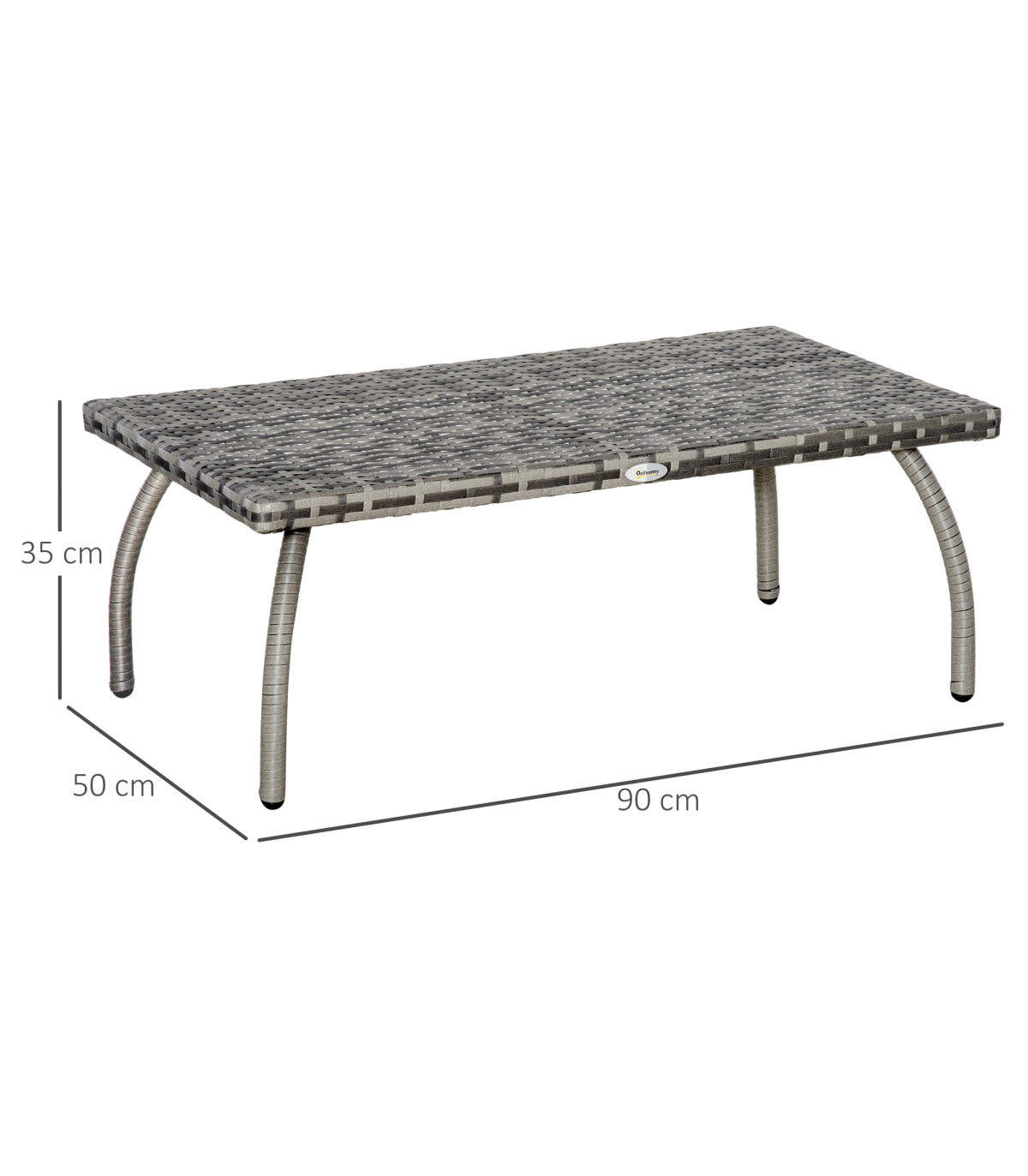 This rectangle, lightweight, durable, and stylish coffee table by Outsunny will become the focal point of your garden or patio. The all-hand-woven PE rattan is wrapped around a metal frame, while 4 table legs provide stability and durability while in use. Furthermore, the tabletop lined with a PP board creates a flat, stable area while being easily wiped for cleaning. Enjoy your tea time with this Outsunny end table.