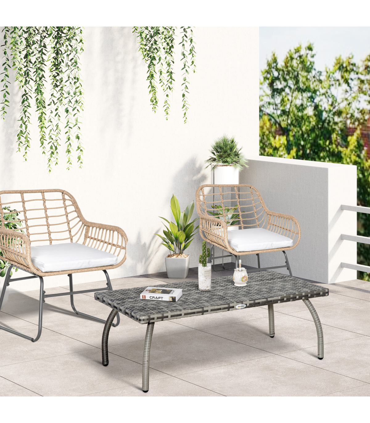 Rattan Coffee Table, Patio Wicker Table with All-Weather Grey