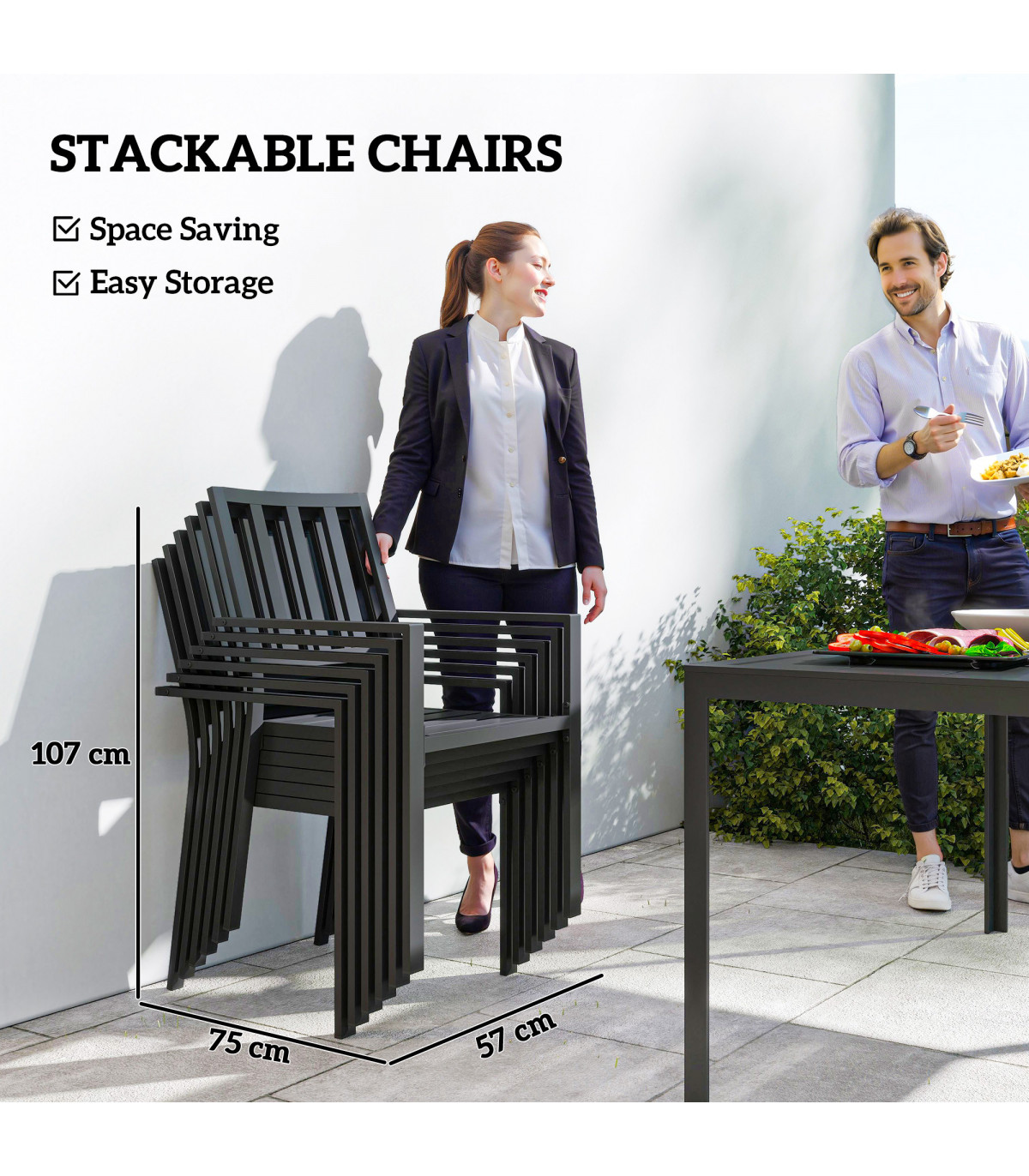 ? Stackable dimension(six chairs): 107H x 57W x 75D cm