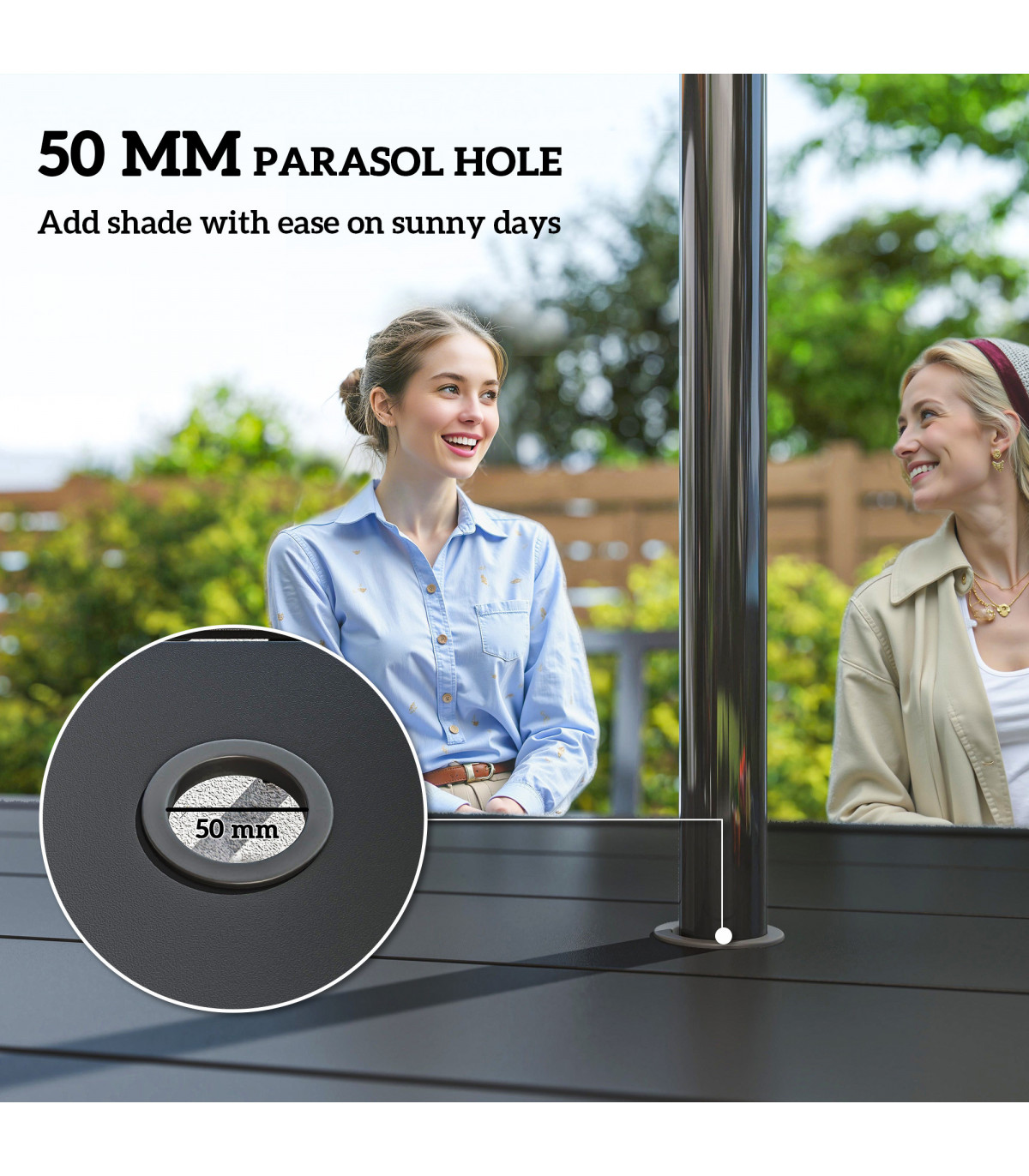 ? Table middle with an umbrella hole fit ?50mm diameter umbrella pole