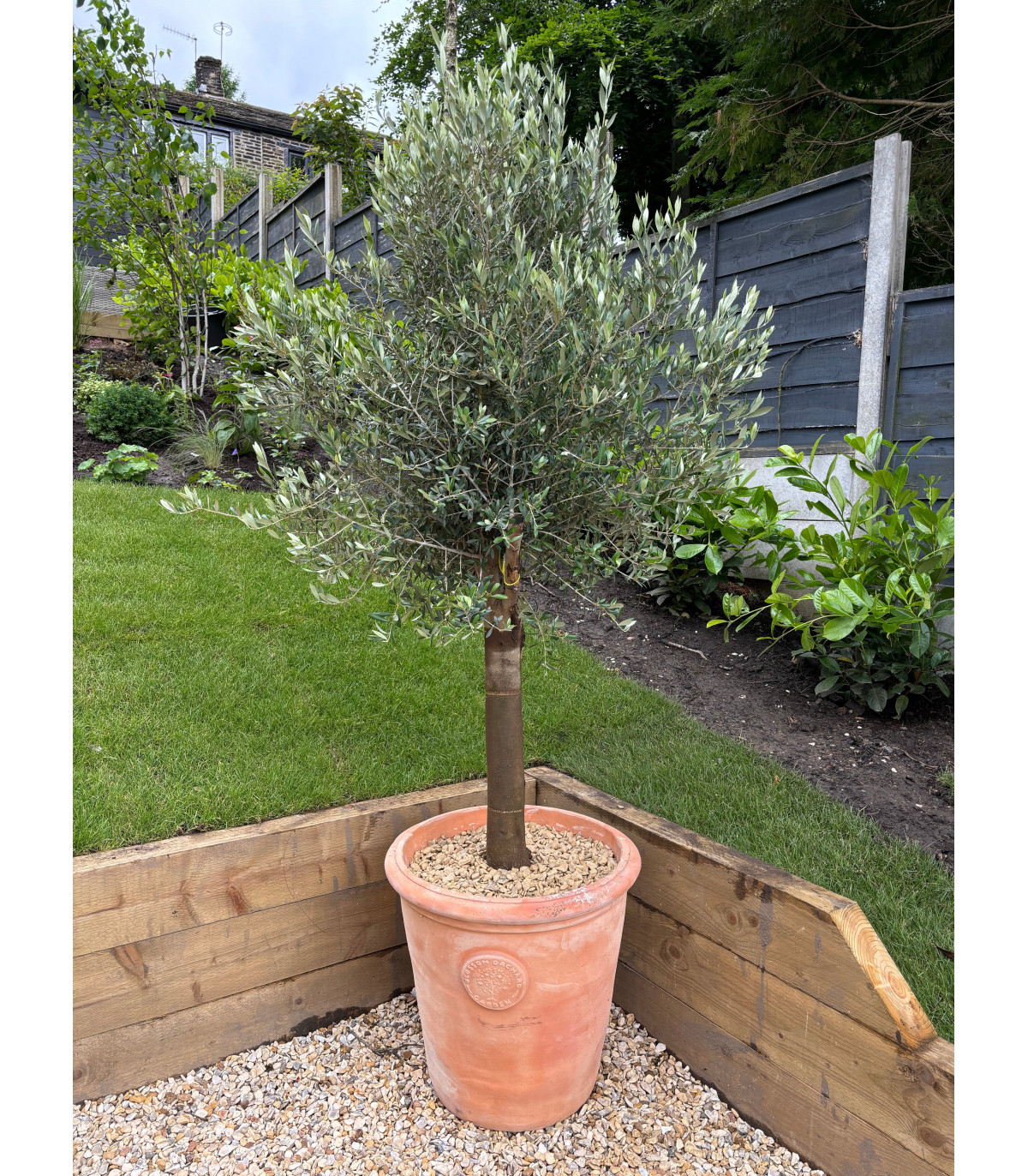 A mature olive tree, currently at a height of 150-180cm in 45L growers pot.